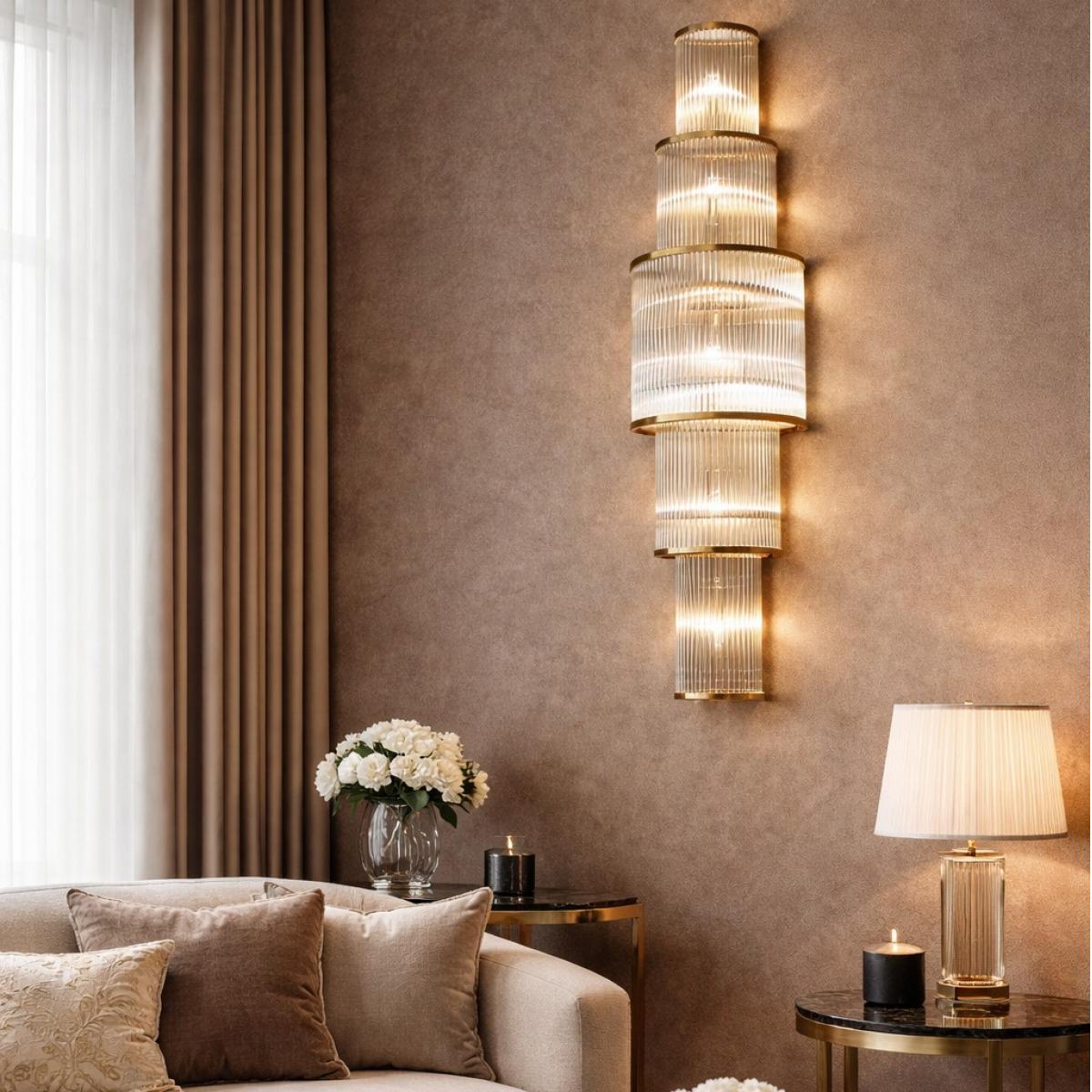 Ideal for living rooms, bedrooms, hallways, and hotel lobbies, this lamp adds rhythm and elegance to long walls, creates a hotel-style atmosphere beside mirrors or artwork, and enhances the aesthetic appeal of any space. The Luxury Golden Frame Modern Art Deco Fluted Glass Tiered Wall Lamp is not just a light fixture but a statement piece that embodies the essence of luxury and sophistication. For more luxurious wall sconces, visit our Luxury Wall Lamp Collection.