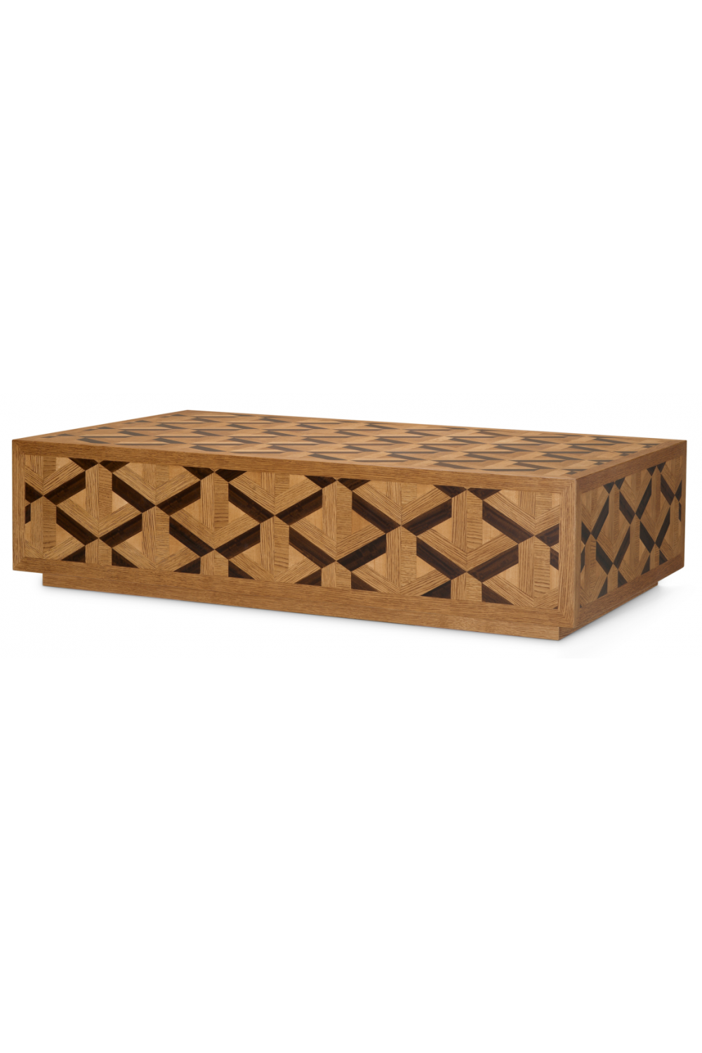 The Luxury Grand Luxe Coffee Table combines artisanal craftsmanship with contemporary design. Made from oak veneer and featuring a handcrafted inlay pattern, it delivers a sophisticated centerpiece that adds depth, texture, and elegance to any upscale interior.