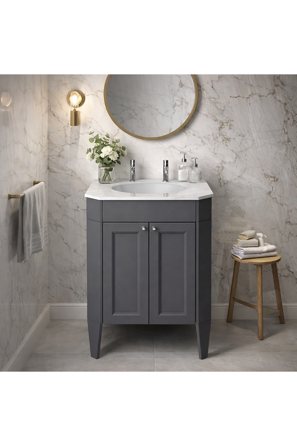• Concealed storage solution ideal among luxury vanities for bathroom spaces