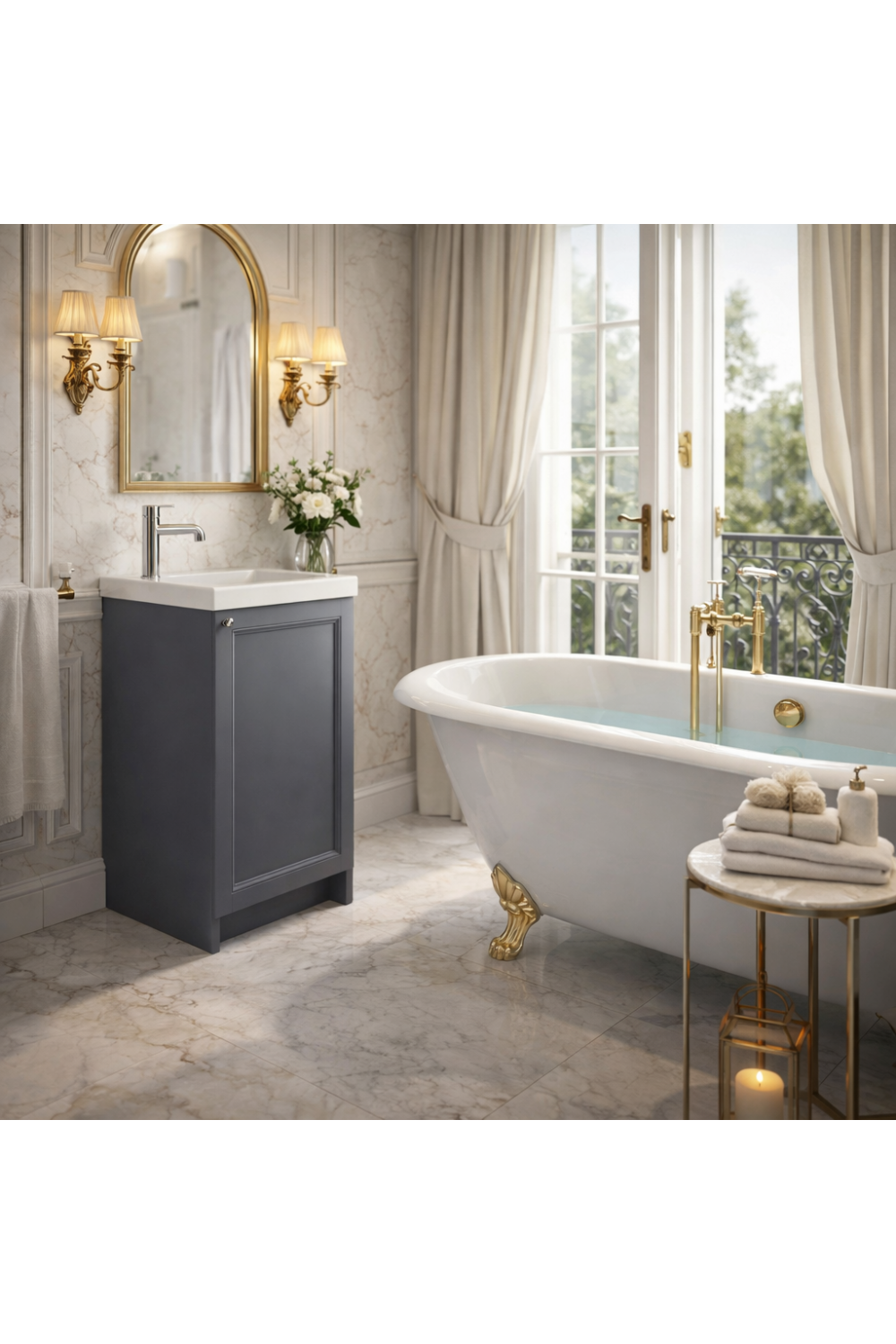 Luxury Graphite Finish Wall Hung Single Door Cloakroom Unit – 40 CM is expertly designed to bring refined functionality to smaller bathroom spaces without compromising on style. Crafted from premium MFC and MDF, this wall hung single door cloakroom unit features a smooth graphite finish that introduces modern depth and sophistication. The single-door configuration provides discreet storage for daily essentials, while the wall-mounted design creates a clean, floating appearance that enhances spatial openness. Built for reliability, this designer cloakroom unit is ideal for busy households and refined guest bathrooms alike.