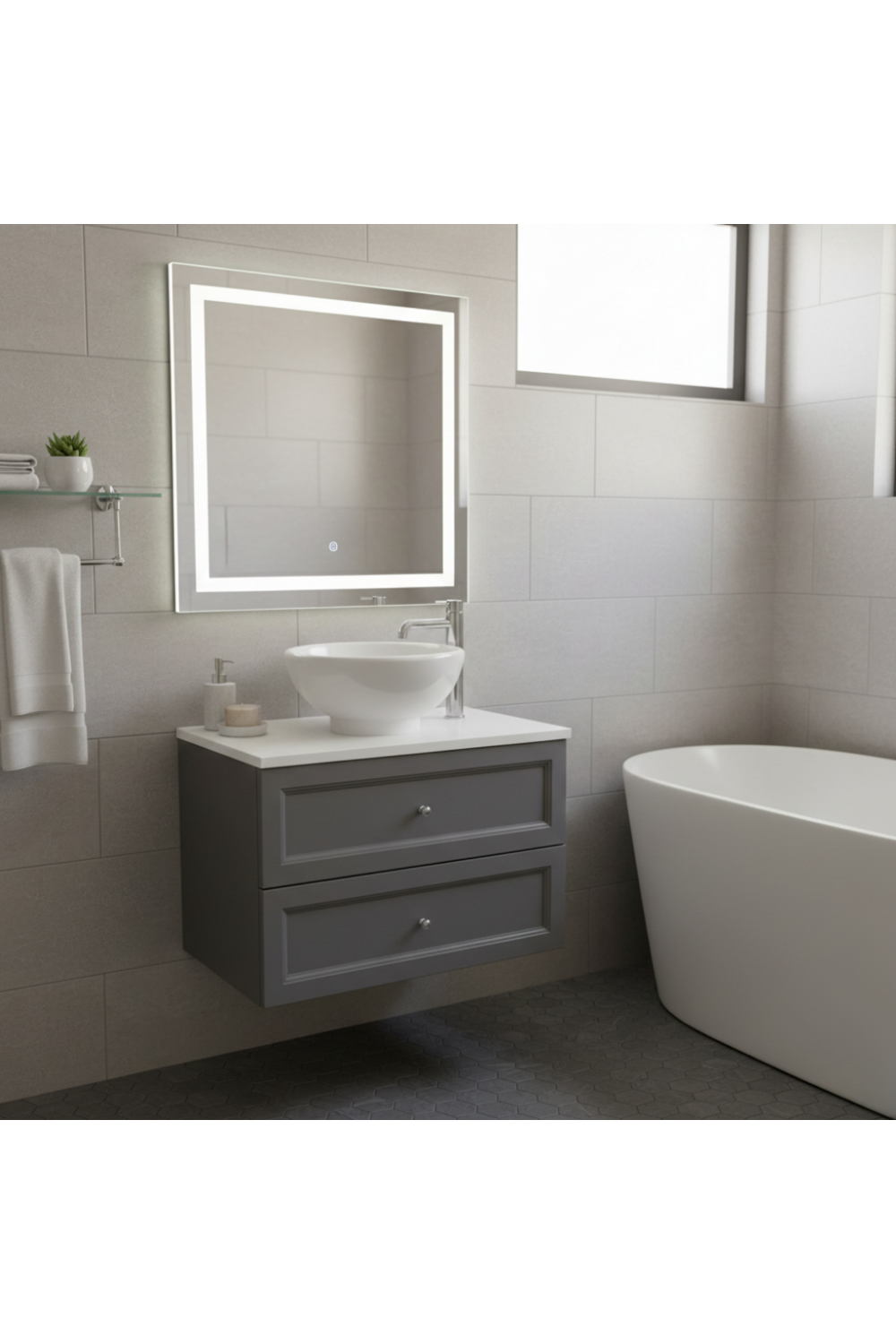 Luxury Graphite Finish Wall Hung Two Drawer Vanity Unit – 70 CM brings balanced proportions and refined European detailing to modern bathroom spaces. Crafted from premium MFC and MDF, this wall hung two drawer vanity features a sleek graphite finish that complements both minimalist and classic interiors. The two-drawer configuration offers discreet, well-organized storage for daily essentials, while the wall-hung installation creates a clean, floating aesthetic that enhances visual space. Built for longevity, this designer two drawer vanity unit performs reliably in humid environments and busy households.