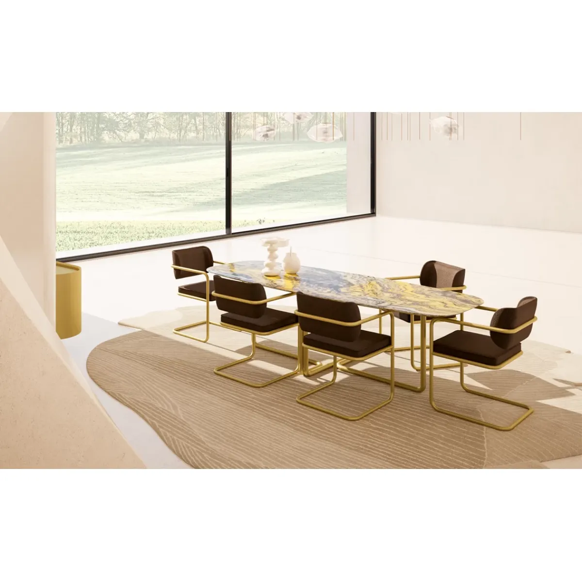 Pair this dining chair with armrest in vintage gold finish with other modern furniture pieces for an elegant setting. Additionally, explore our luxury chandelier collection to add a touch of elegance and grandeur to your space. For a complete luxury dining setup, check out our luxury nightstands for that perfect complementary touch. Browse our full range of stylish options in the luxury dining chair collection, designed to elevate your dining experience with timeless elegance. Pair this exquisite chair with our Rectangular Marble Top Dining Table with Brass Finish Golden Legs for a seamless blend of luxury and sophistication in your dining space.