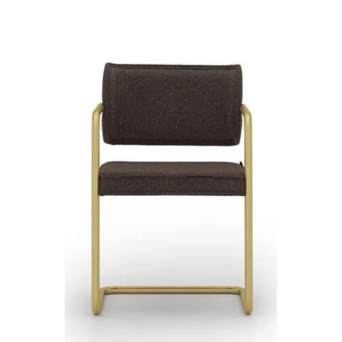 Crafted for comfort and style, the luxury Dark Brown  upholstered dining chair with armrest in vintage gold finish is the ideal addition to any upscale dining area. This chair combines sleek, modern design with timeless craftsmanship. The brass frame ensures durability, while the vintage Dark Brown upholstery provides a refined touch, adding a layer of luxury to your dining experience. The extra-wide (24") and deep seat make it perfect for long hours of dining or conversations, offering both comfort and sophistication. The armrests give added support, making it a luxurious and practical choice for your home.