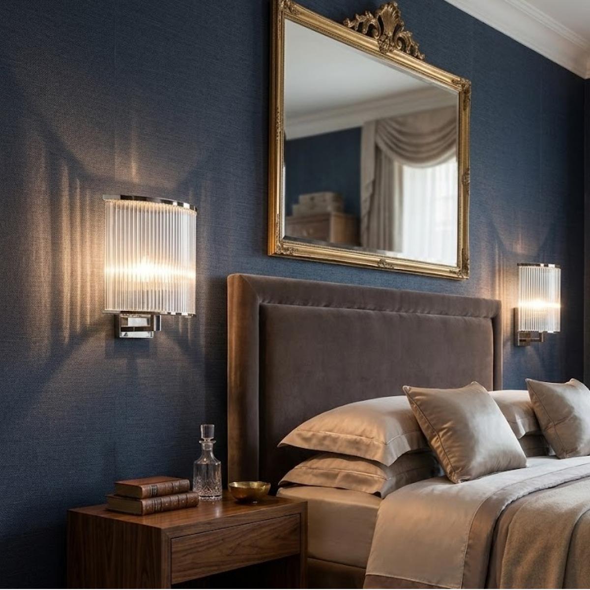 Designed to evoke the glamour of the 1920s and 1930s, the luxury half round modern Art Deco glass rods wall lamp combines vertical glass rods with a minimalist yet elegant frame. The fluted glass design acts as a prism, diffusing the light in a way that reduces glare while creating a gentle “stardust” effect. Whether in a luxury hallway, bathroom, entryway, or bedroom, this luxury wall lamp is perfect for accentuating walls and enhancing the overall ambiance of your space. Explore our full range of luxury wall lamp collections to find the perfect lighting to elevate your space. Additionally, discover our luxury hotel furniture for sophisticated designs that complement any high-end interior.