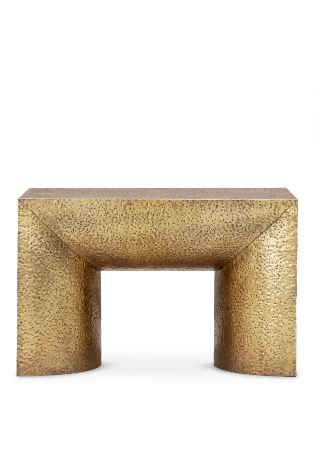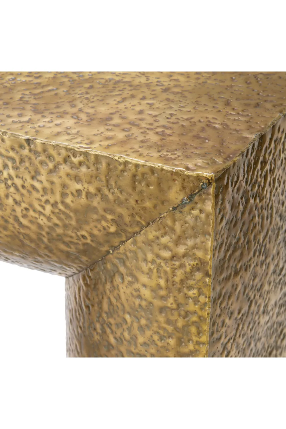 • Hammered vintage brass finish side table features hand-crafted texture that celebrates artisanal individuality.