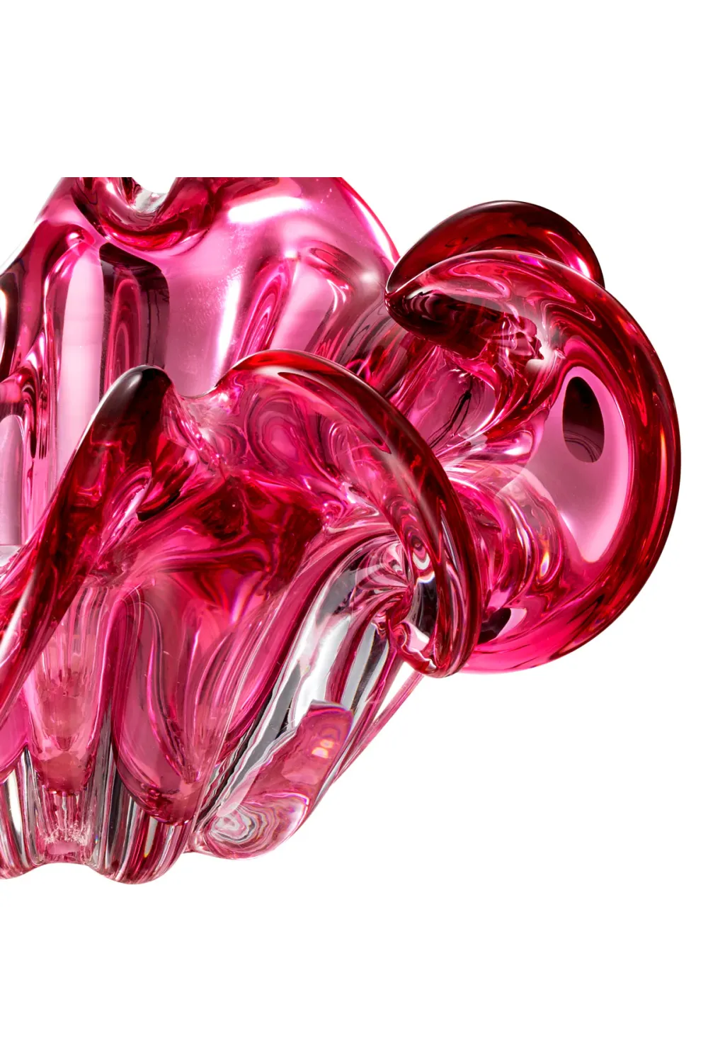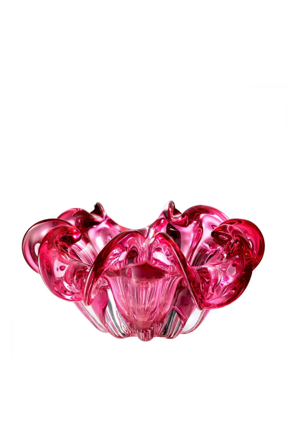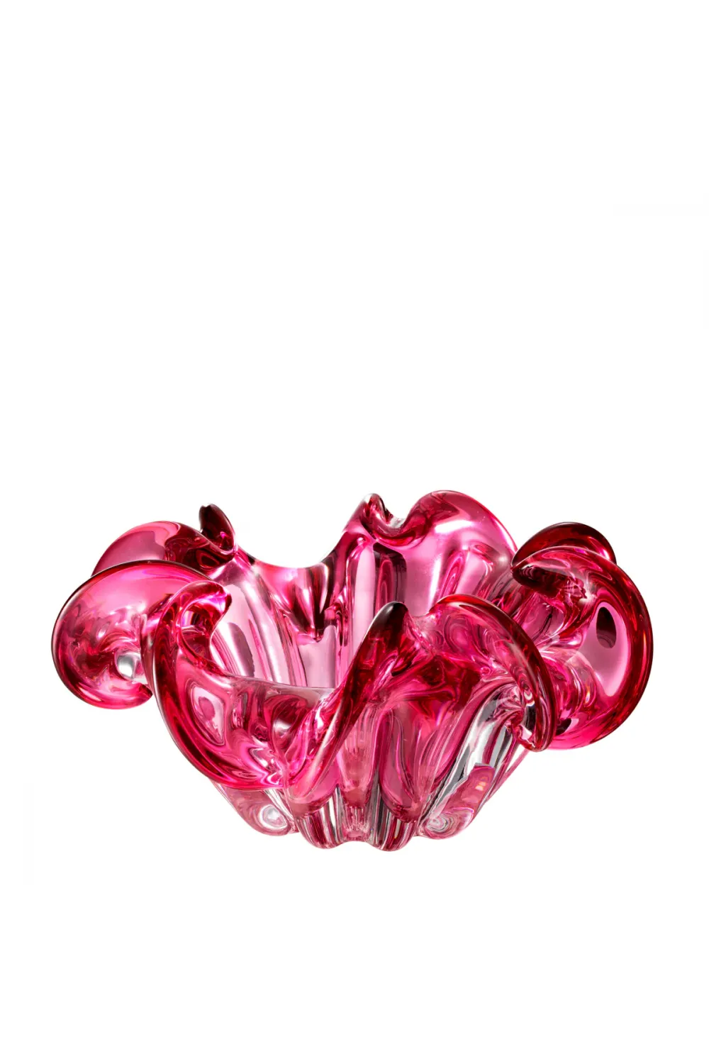 Introduce a refined splash of colour with this luxury hand blown bowl, crafted in an enchanting pink hue. Its sculpted calyx form and wavy rim create a captivating luxury pink glass bowl, making it the perfect fancy glass bowl for modern European interiors.