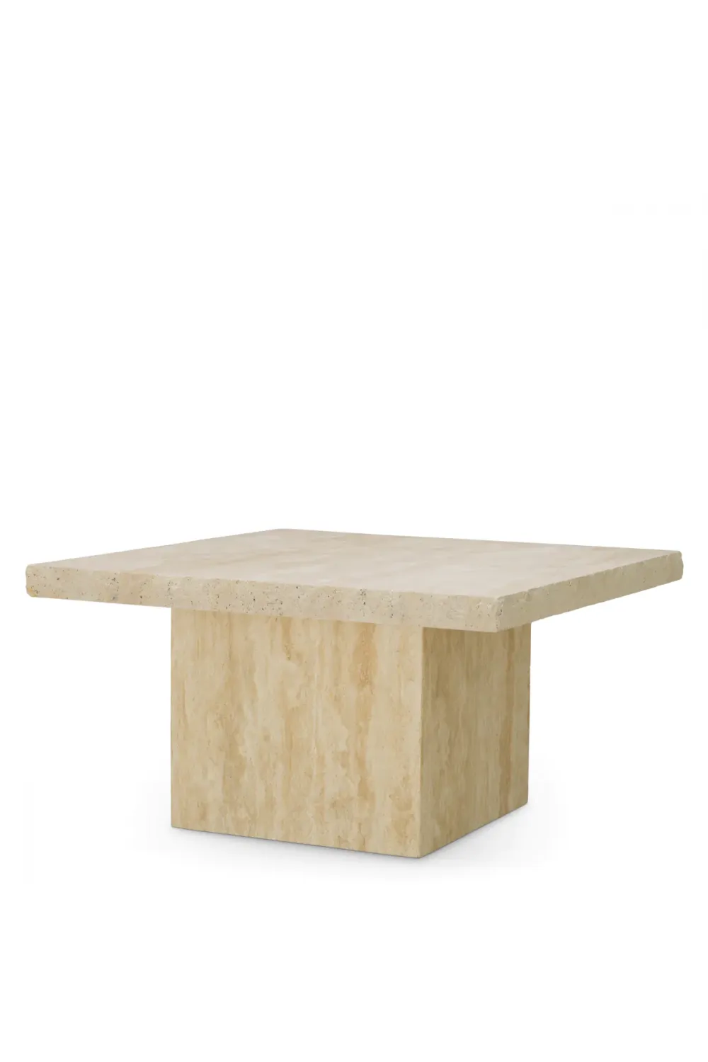 Its square silhouette and clean lines create a sleek, modern presence, while the organic patterns of travertine bring depth, character, and a sense of timeless grandeur. Designed for indoor spaces, this table adds a luxurious focal point to living rooms, upscale lounges, or designer interiors.