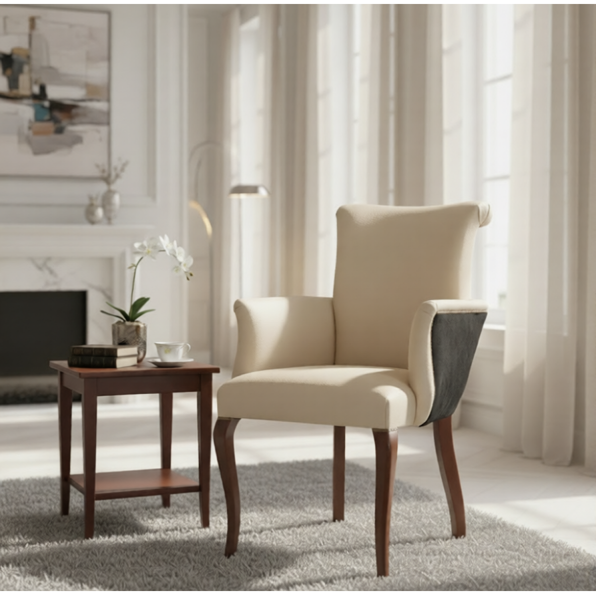 Created for refined interiors, this armchair harmonizes beautifully with curated collections of luxury dining chairs, offering both elevated comfort and architectural presence. Its supportive arms and elongated backrest make it ideal for head-of-table placement, while also pairing effortlessly with the Luxury High Back Upholstered Dining Chair in Cream Beige with Sculpted Walnut Legs for a coordinated dining arrangement. Within premium luxury armchairs for dining room settings, it delivers a balanced fusion of statement design and everyday sophistication.