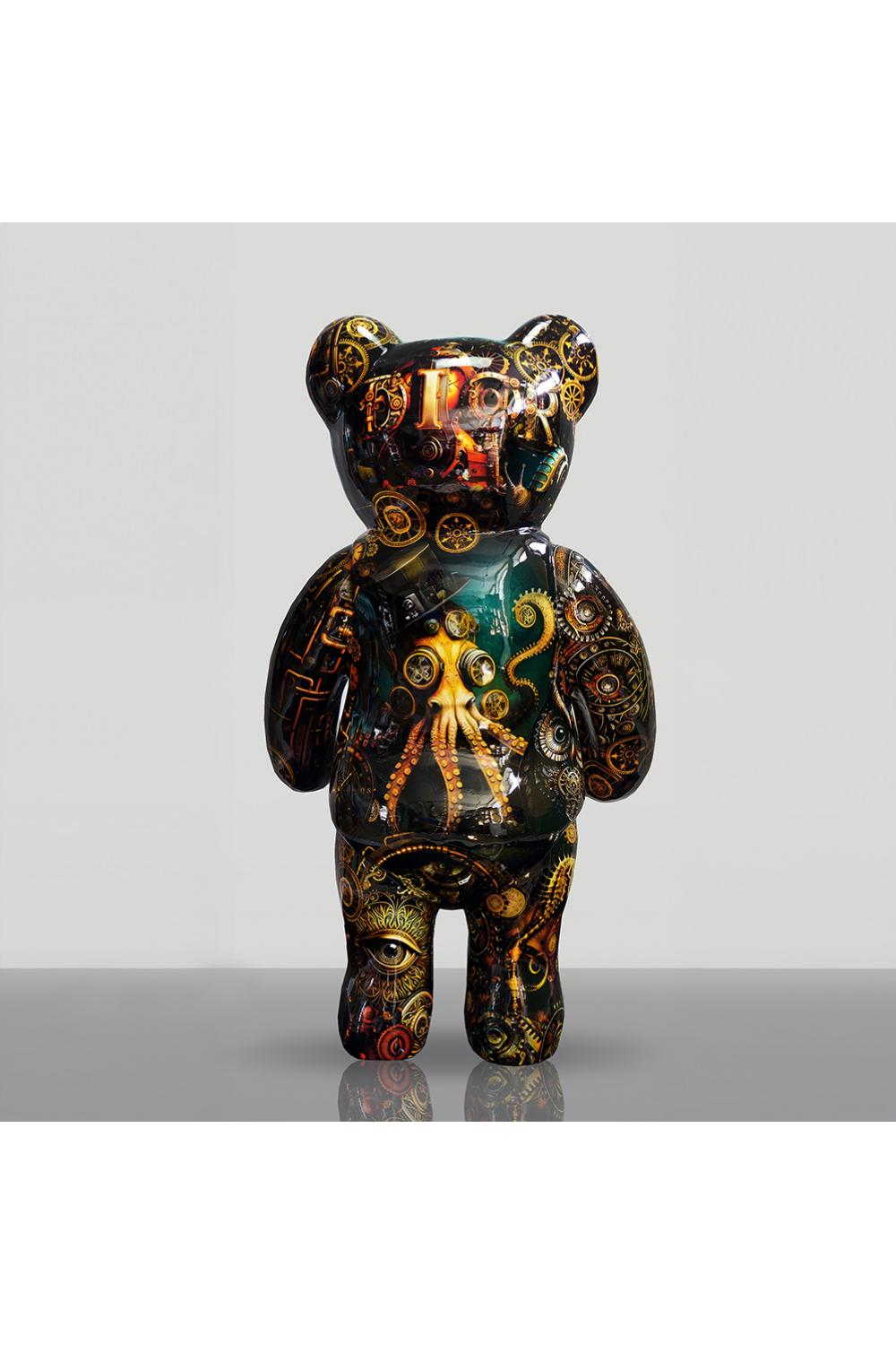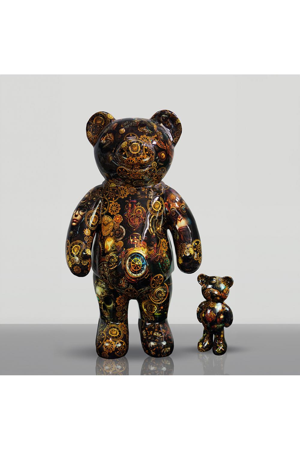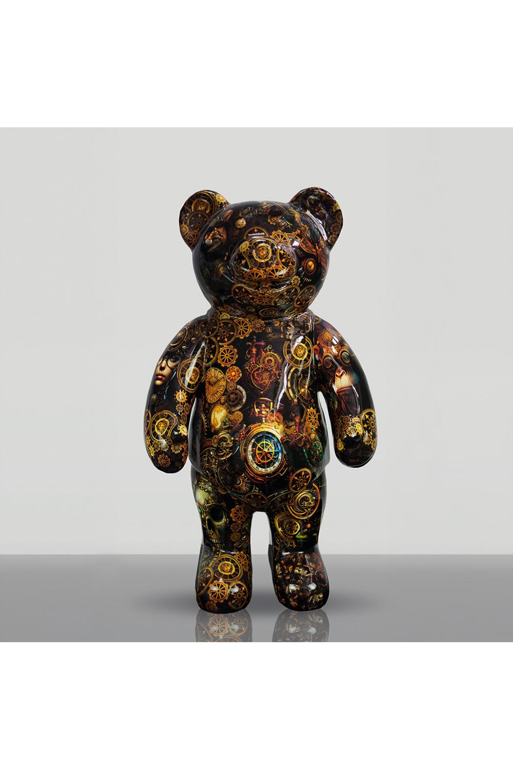 Designed for spaces that celebrate originality and artistic depth, this life-size bear sculpture reimagines industrial aesthetics through a refined steampunk visual language. Each surface is wrapped in a detailed metallic vinyl composition featuring gears, mechanisms, and intricate mechanical artwork. The result is a striking fusion of sculpture and engineered artistry—perfect for collectors and interiors that embrace bold, imaginative décor.