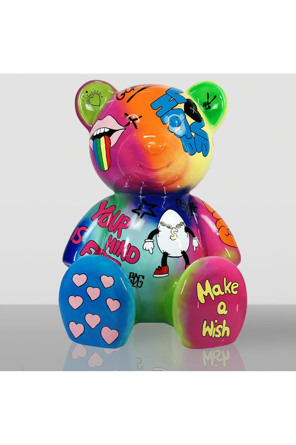 Charming, artistic, and delightfully oversized, this hand-painted teddy bear sculpture brings a warm and whimsical touch to luxury interiors and curated display spaces. Crafted from premium PWS glass laminate, it stands an impressive 120 cm tall, offering the perfect blend of artistic craftsmanship and playful elegance. Ideal for boutique hotels, studios, galleries, children’s rooms, and themed interiors seeking a unique focal point.