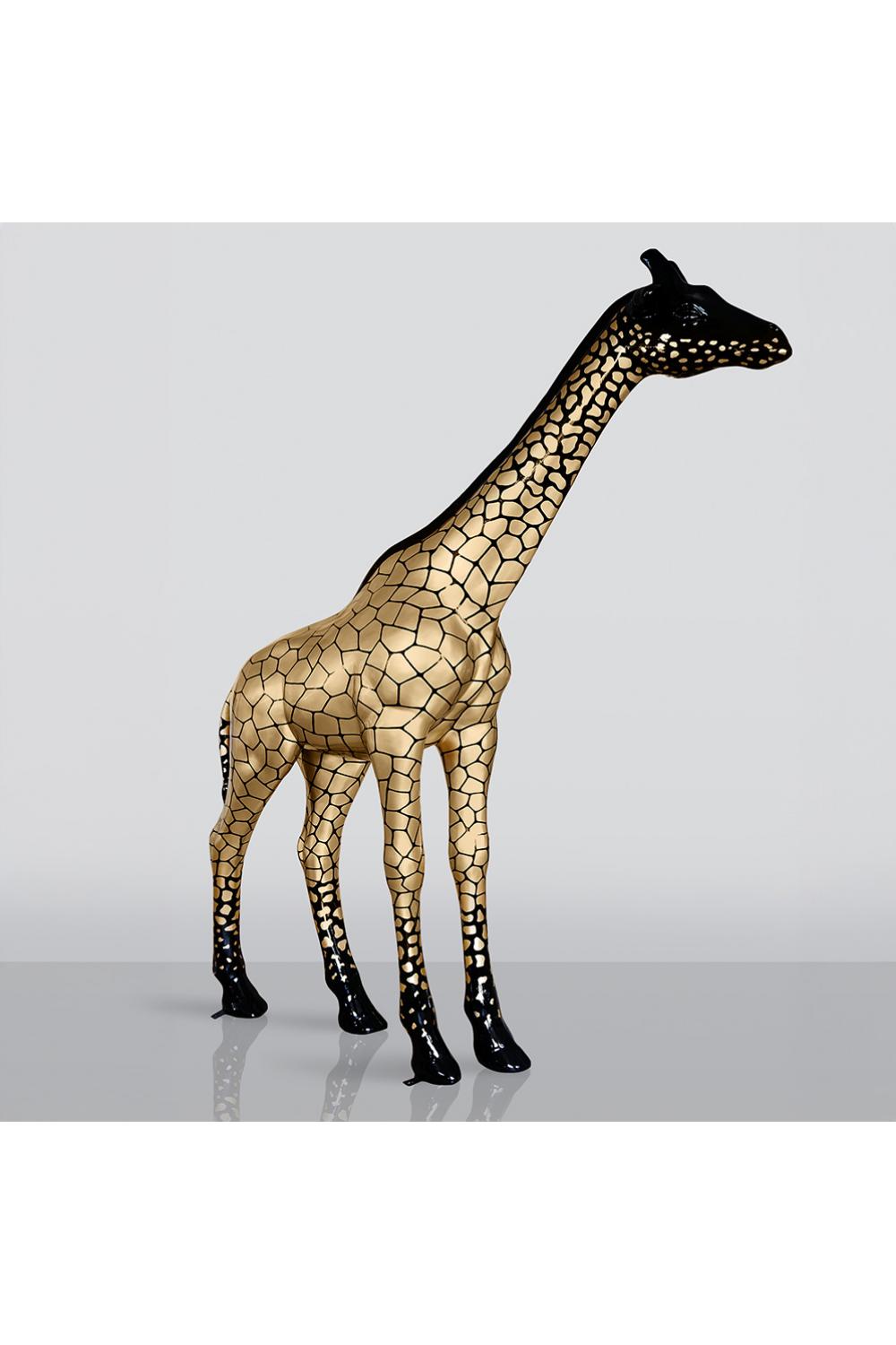 Impressive life-size giraffe sculpture with elegant gold detailing