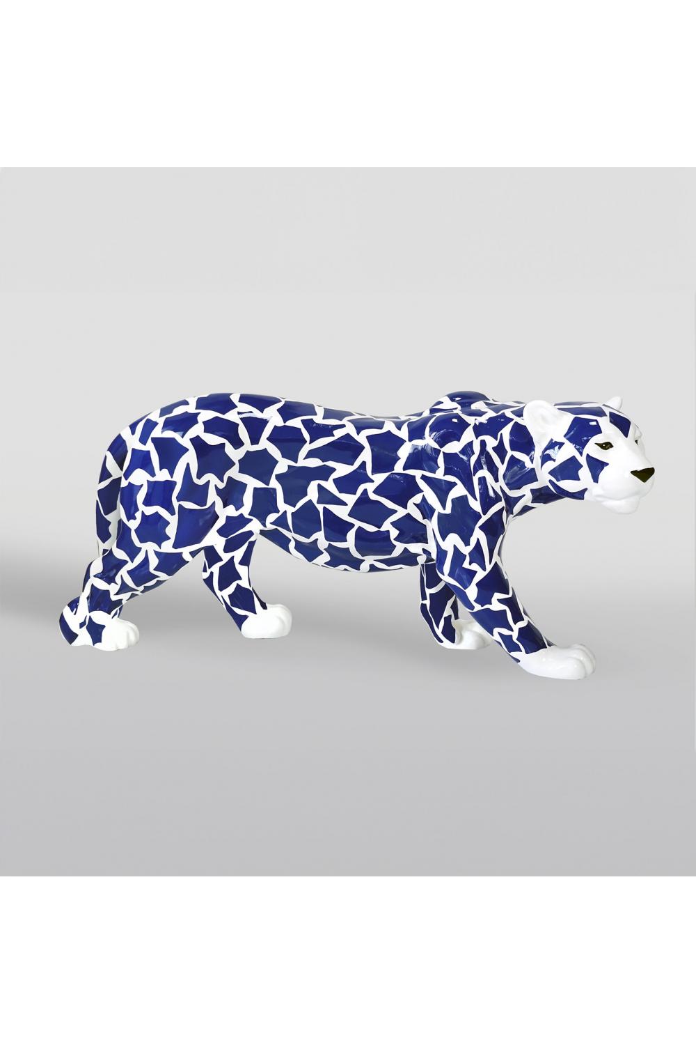 Home > Sculptures & Statues > XXL Sculptures (Hotel & Garden) > Luxury Life-Size Panther Sculpture with Blue Artistic Pattern – 160 cm Statement Art