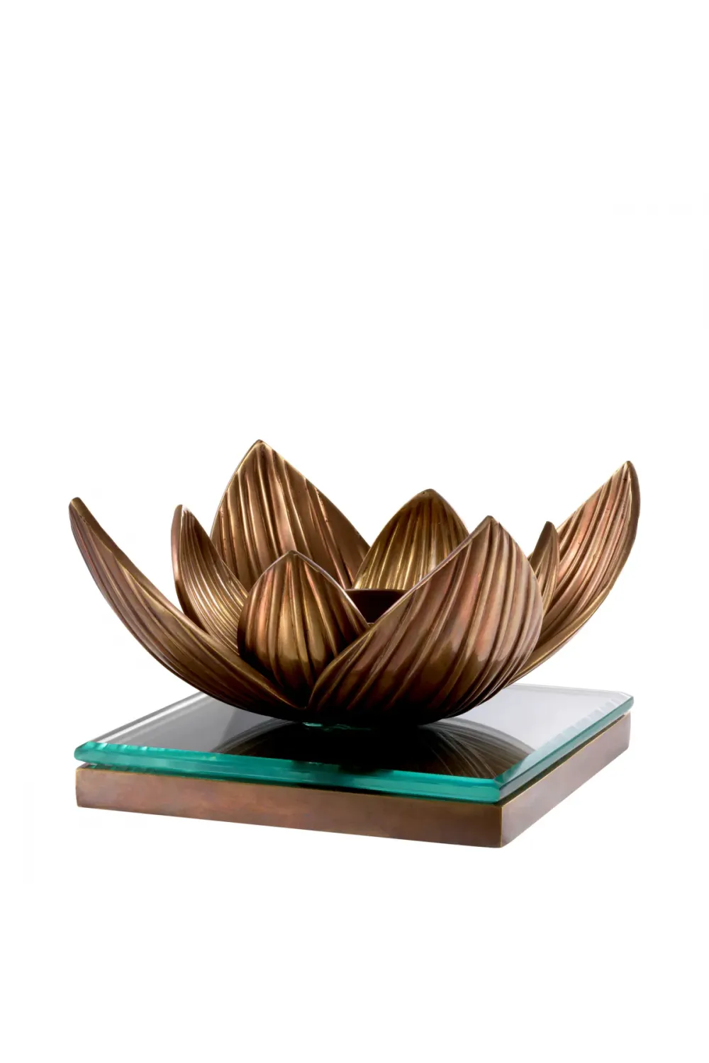 Expertly crafted from metal and finished in antique brass, this exquisite piece captures the intricate detailing of lotus petals, creating a perfect harmony between natural form and refined artistry.