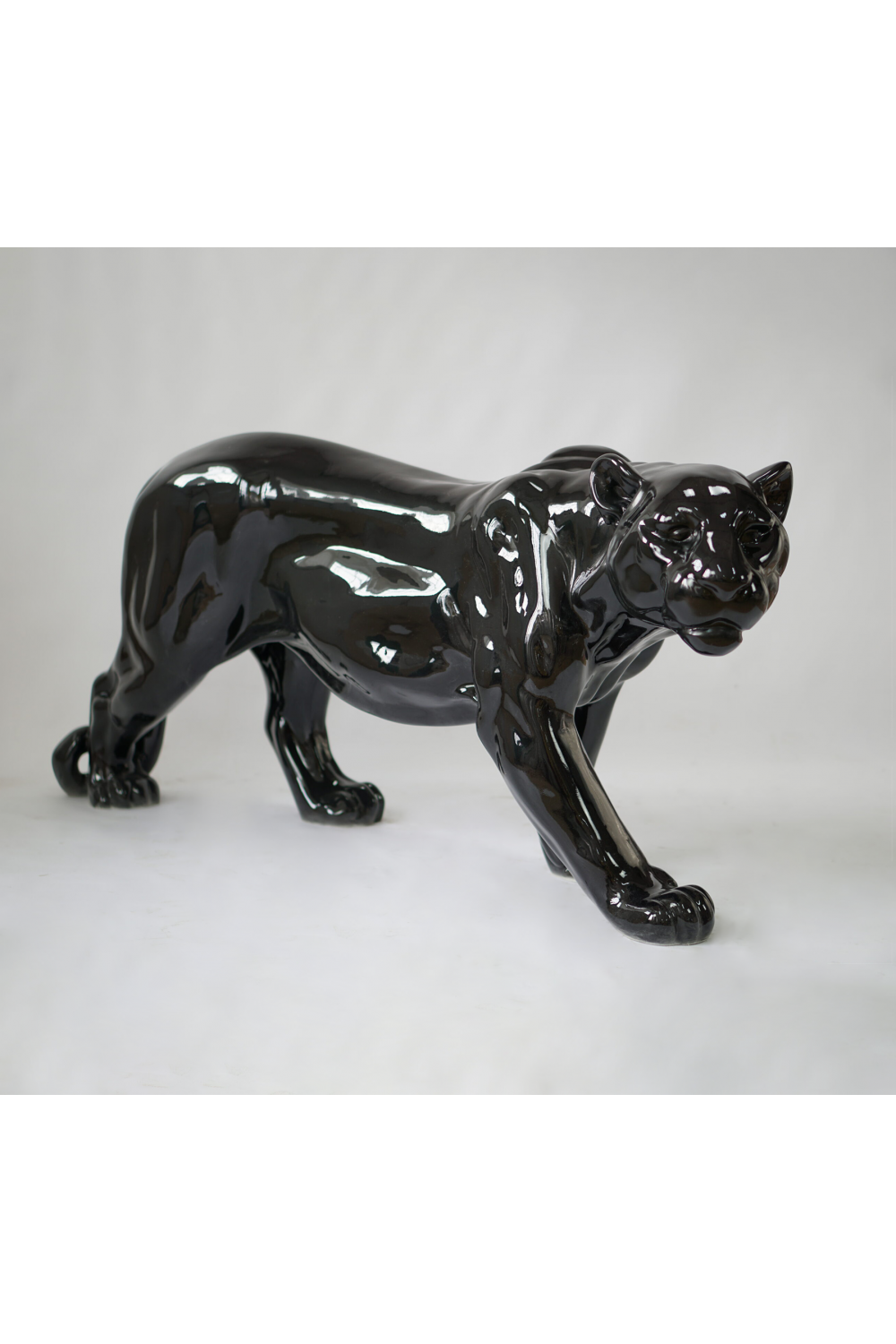 Luxury Majestic Black Panther Standing Sculpture in High-Gloss Finish represents courage, elegance, and contemporary artistic expression through a commanding sculptural form. Designed as a premium modern sculpture, this life-sized panther captures a moment of controlled movement, with finely sculpted musculature and a streamlined silhouette that reflects refined European design principles.