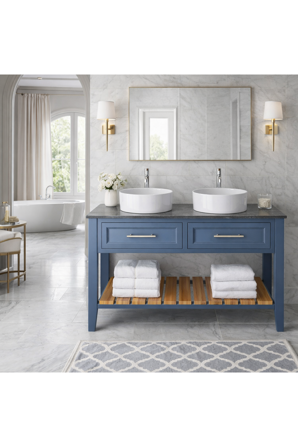 To complete the vanity arrangement, pairing this washstand with a statement luxury mirror enhances spatial symmetry and elevates the daily bathroom experience. A carefully selected mirror reflects light beautifully and complements the Maritime Blue finish with subtle contrast. To explore a wider range of refined bathroom furniture and interior collections, customers are invited to discover more from luxury group, where European craftsmanship and timeless design define every detail.