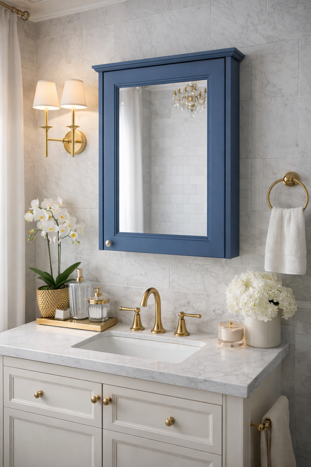 Luxury Maritime Blue Finish Single Door Mirror Wall Cabinet – 50 CM