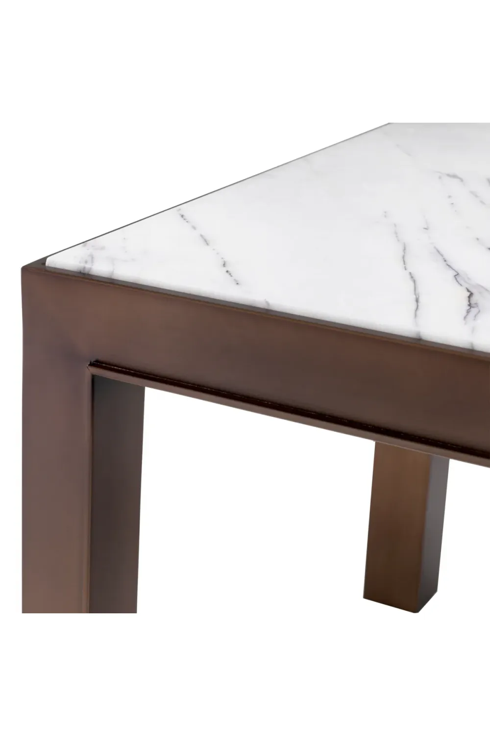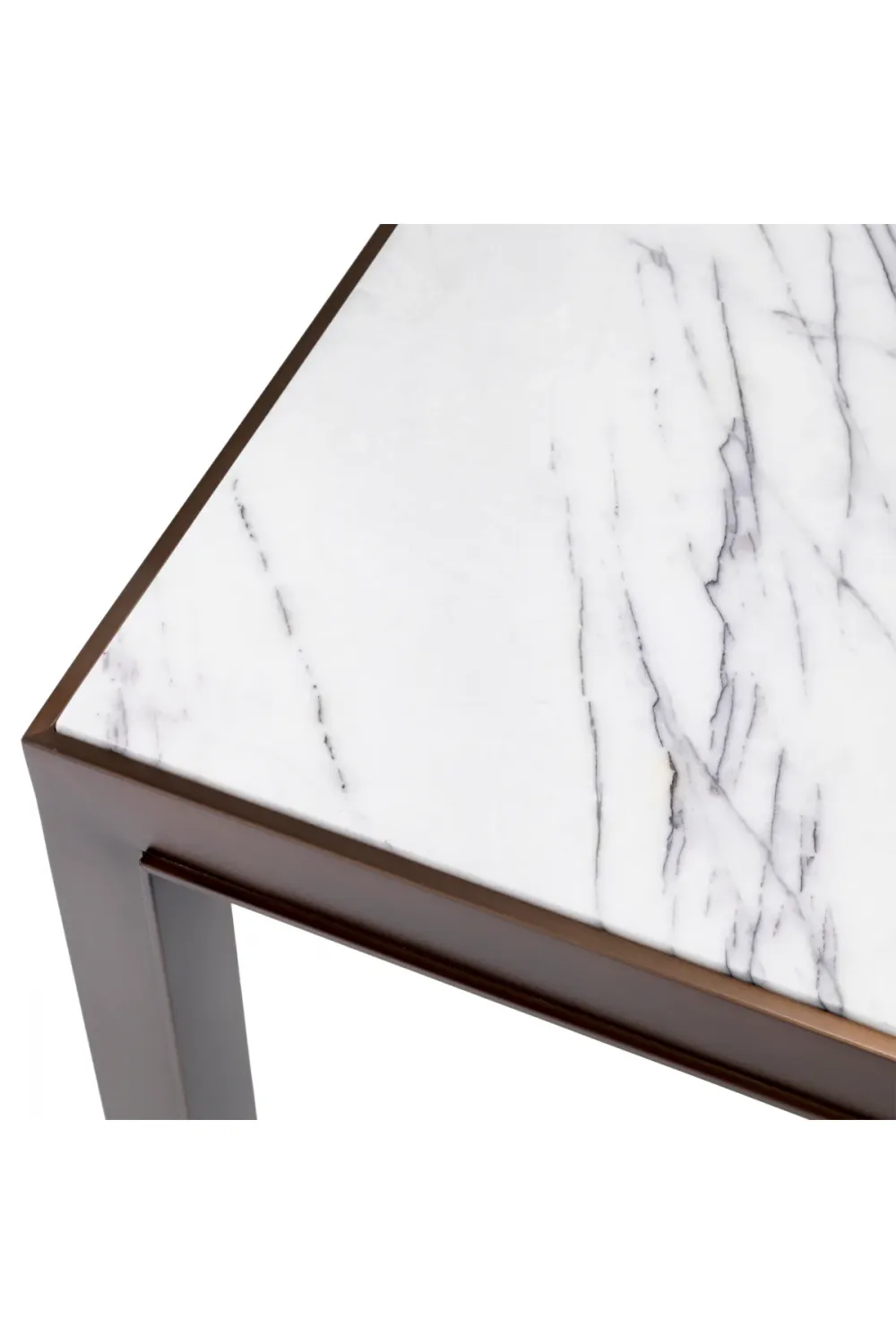 Supported by a sculptural metal frame table, the design highlights refined craftsmanship and architectural strength. The base is finished as a premium bronze finish table, delivering warmth and contrast against the marble surface. This thoughtful construction transforms the piece into a striking table with designer base, blending durability with visual sophistication. Its form and finish position it firmly as a luxury modern table, suitable for both contemporary and classic European-inspired interiors. The metal structure enhances stability while adding an artistic, gallery-worthy presence.