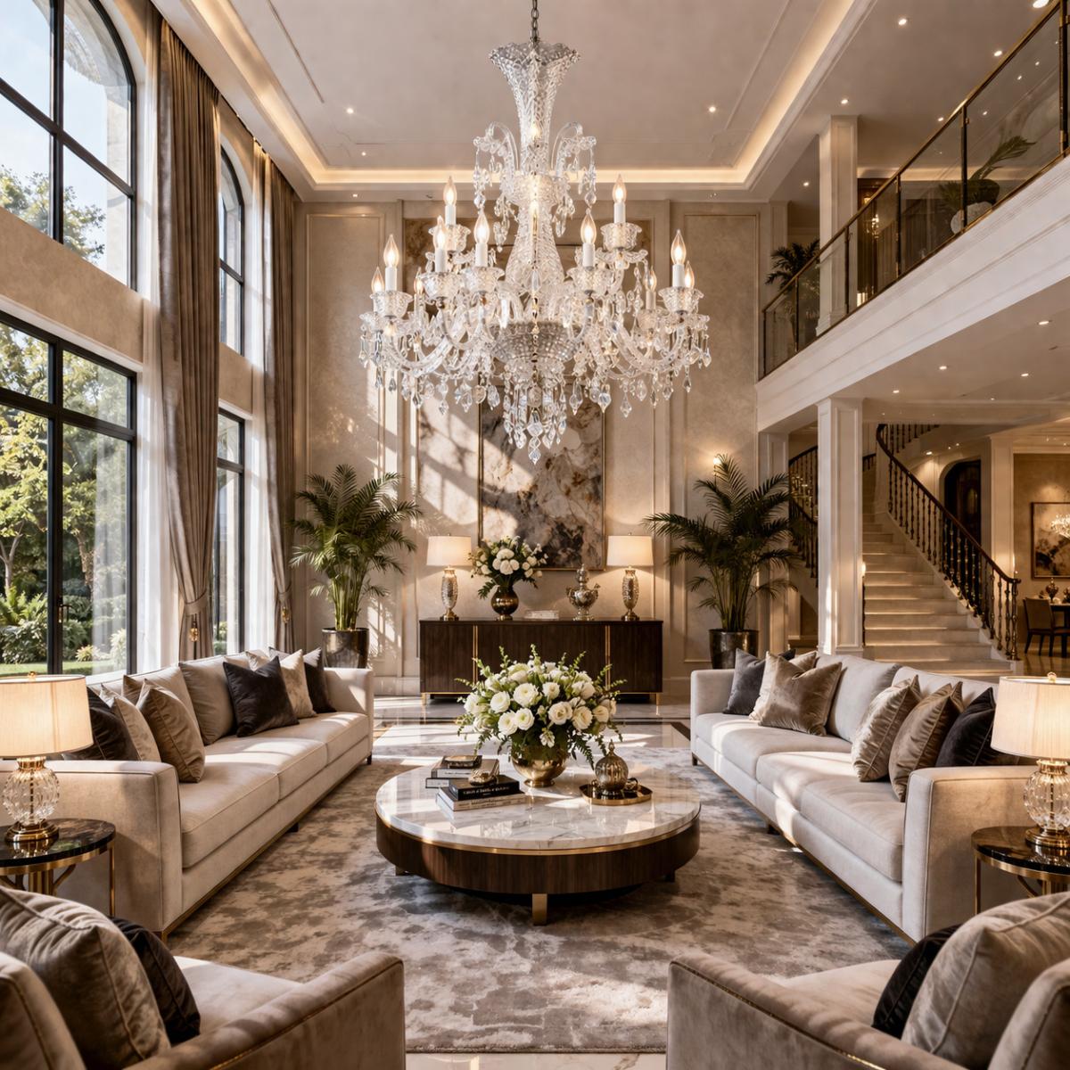 Our luxury chandeliers combine cascading crystal arrangements, intricately crafted metalwork, and opulent baroque detailing, creating breathtaking center pieces that illuminate distinguished interiors with classic European grandeur and enduring luminous elegance.