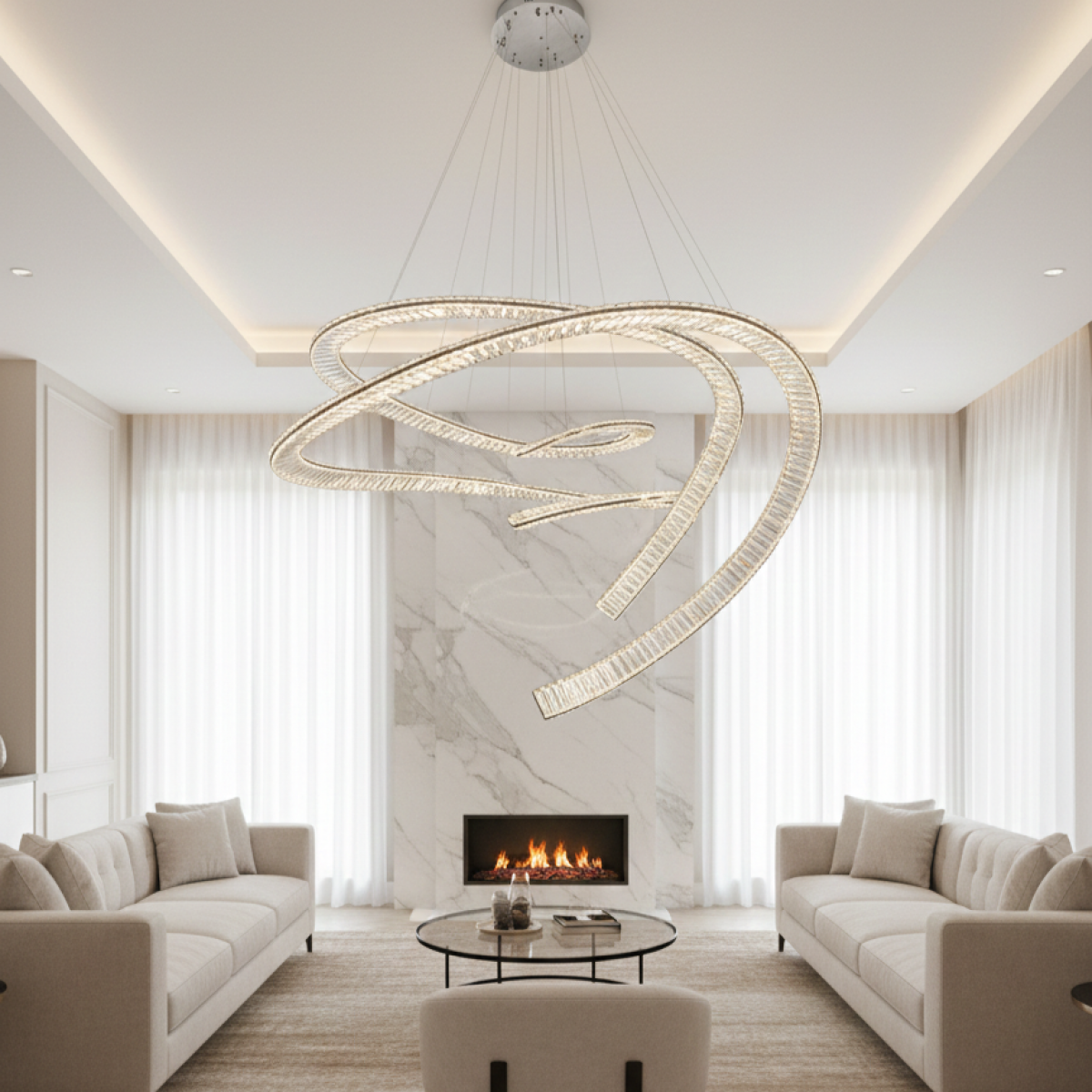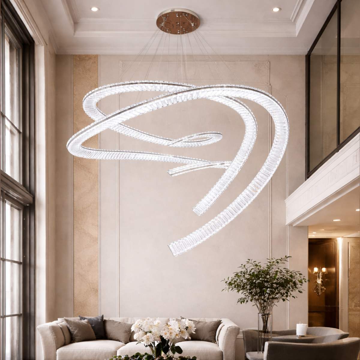 Designed as a bold luxury chandelier, this piece replaces traditional tiered designs with fluid architectural motion. Its vertical spiral cascade enhances spatial depth while maintaining a refined aesthetic suited for contemporary villas and penthouses. Discover more exceptional designs within our Luxury Chandelier Collection to complement this showpiece.