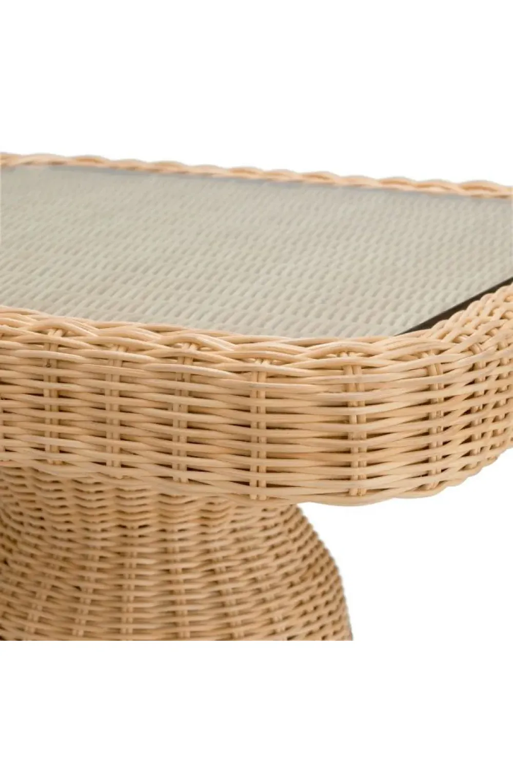The luxury natural rattan side table with clear glass top is a true embodiment of sophisticated design and expert craftsmanship. Handwoven with natural rattan, this side table features a clear tempered glass top that adds a contemporary touch to its organic charm. The glass surface allows for a sleek, airy feel, while the sturdy rattan base offers an inviting and timeless appeal. With its clean lines and harmonious proportions, this side table is an ideal choice for those who appreciate functional luxury and artisanal quality.