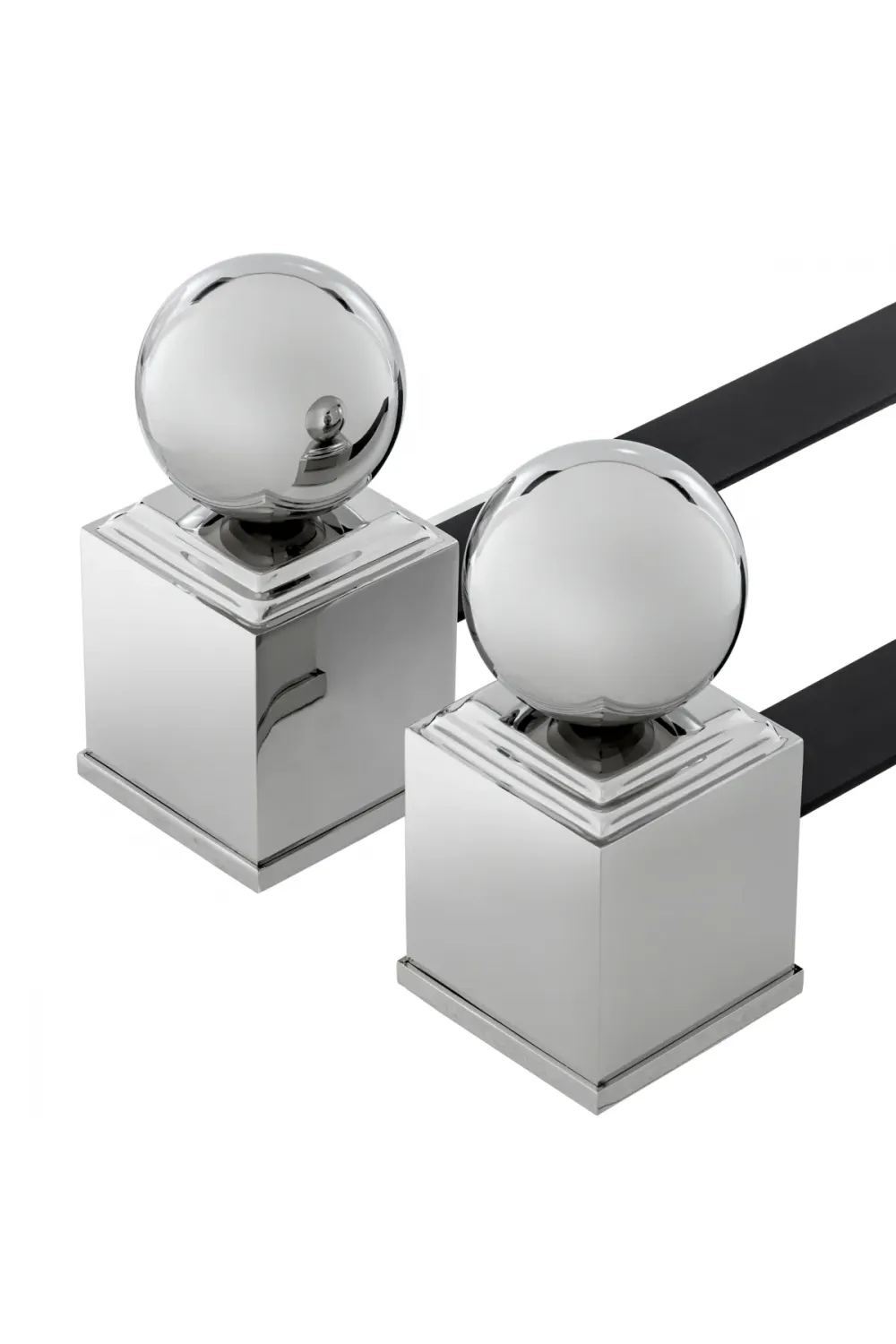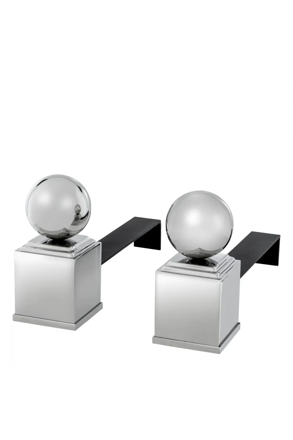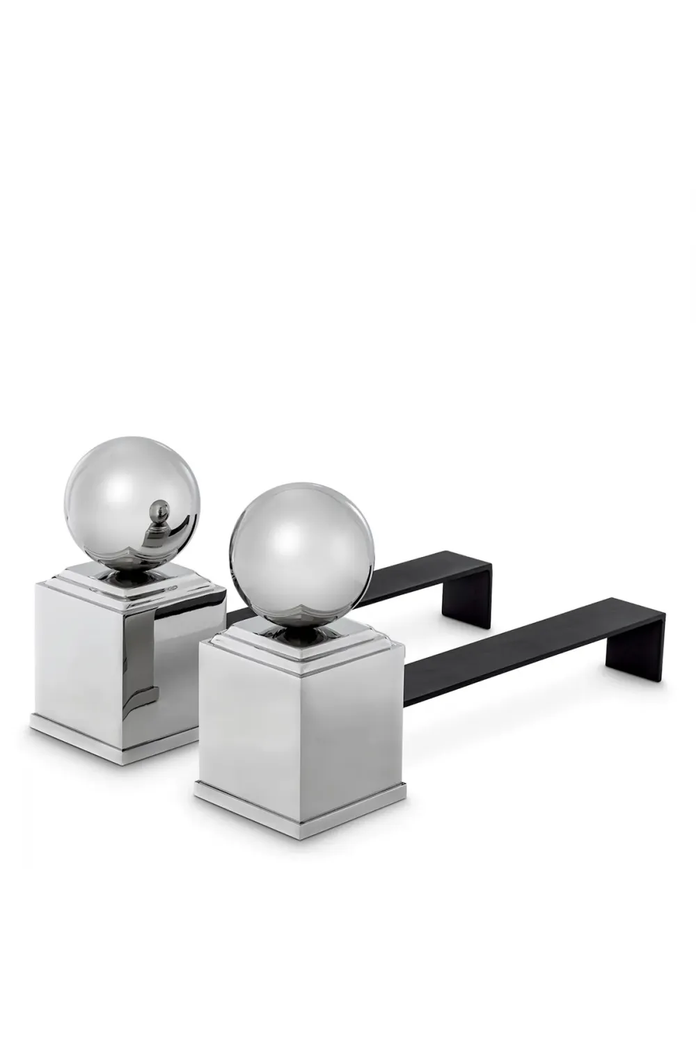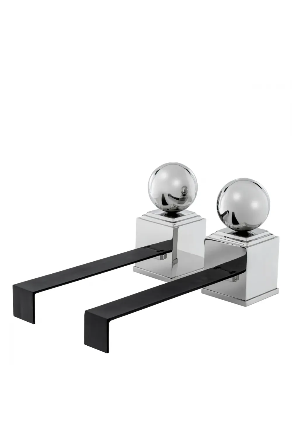 This luxury nickel and black finish log holders set elevates firewood for efficient burning while adding classic elegance to your hearth. Crafted with polished nickel accents and sturdy black bases, these fireplace log holders enhance oxygenation, improve combustion, and bring decorative refinement to modern European interiors.