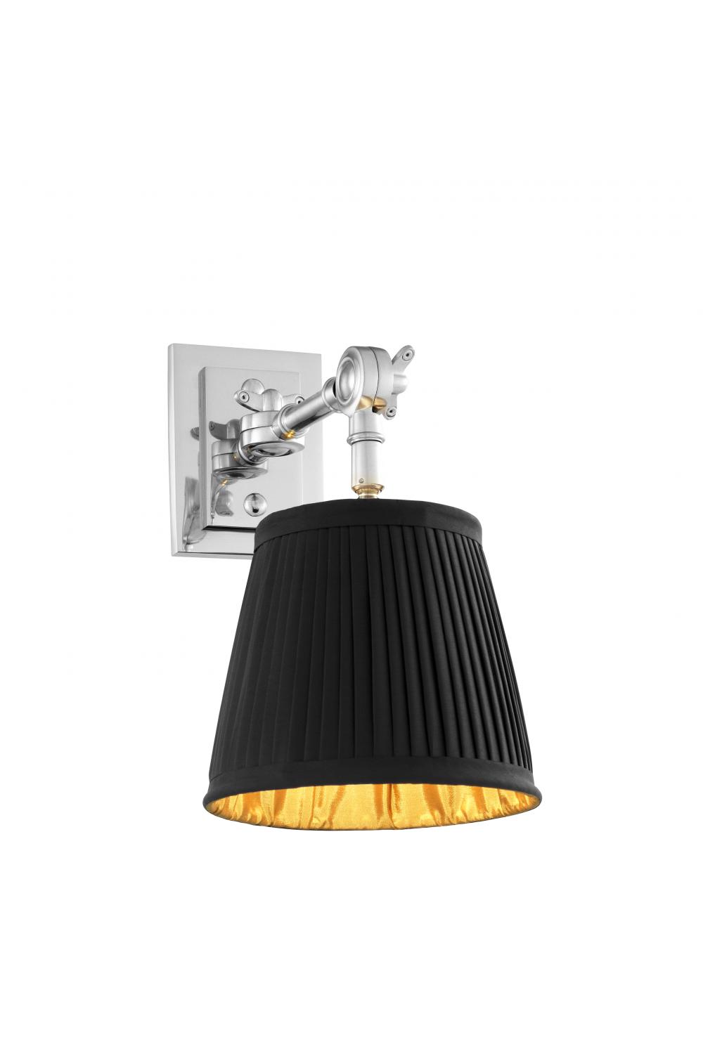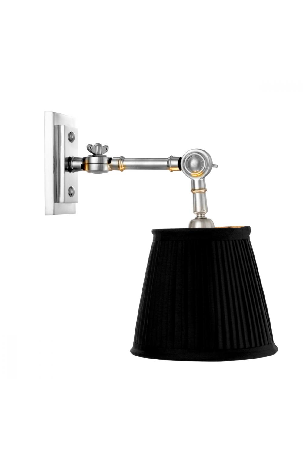 Luxury wall lamp with nickel finish and adjustable arm, designed for boutique-style interiors. This luxury wall lamp features a pleated lampshade, making it a refined Nickel finish wall lamp for elegant living spaces.
