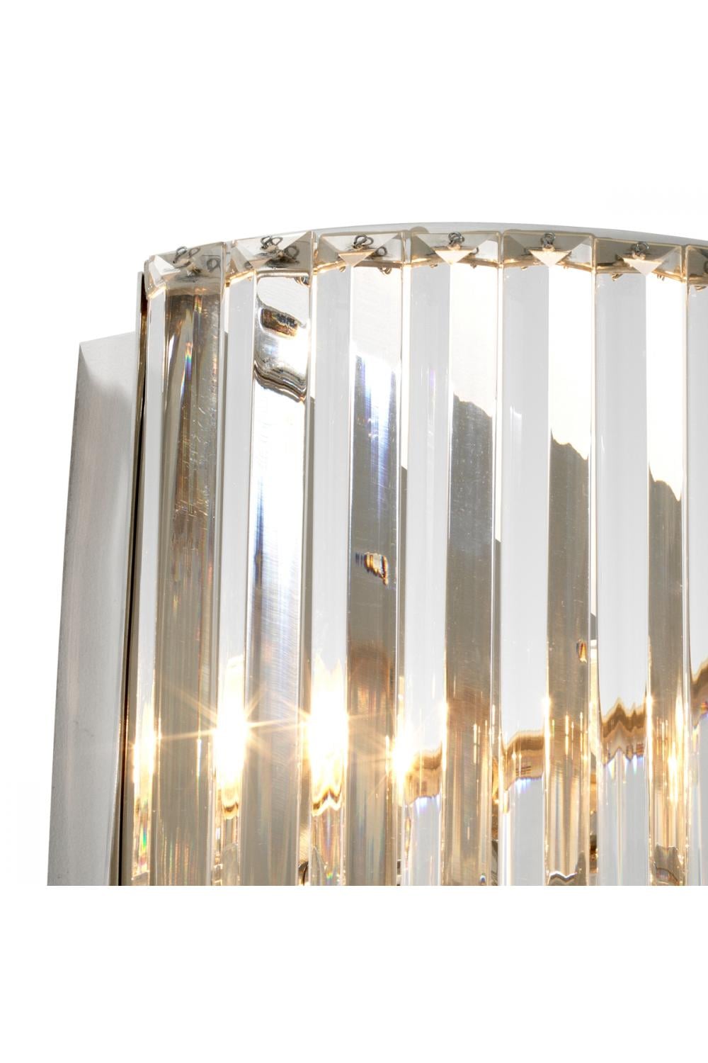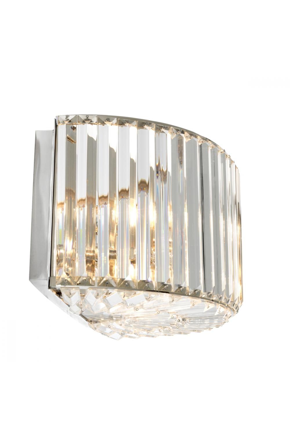 This luxury wall lamp delivers refined brilliance through crystal glass and polished metal detailing, creating an elegant lighting statement. A sophisticated nickel finish wall lamp designed for elevated European interiors.