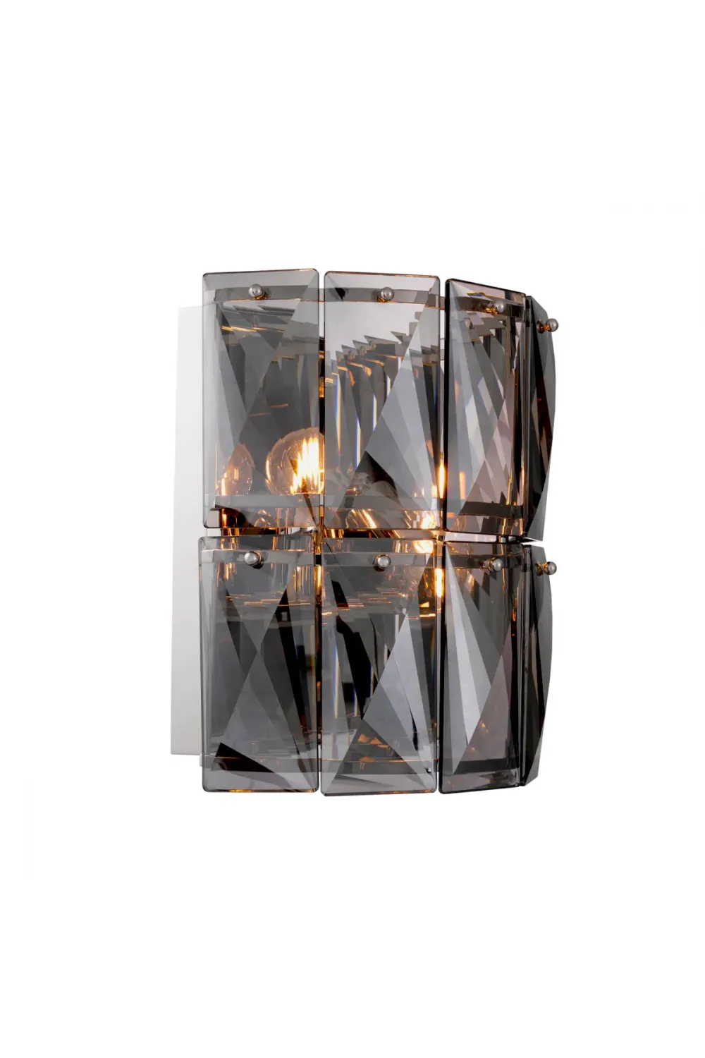 A refined luxury wall lamp crafted with a polished nickel finish and faceted crystal glass, creating a sophisticated play of light. Designed to elevate elegant European interiors, this crystal glass wall lamp delivers timeless glamour with architectural clarity.