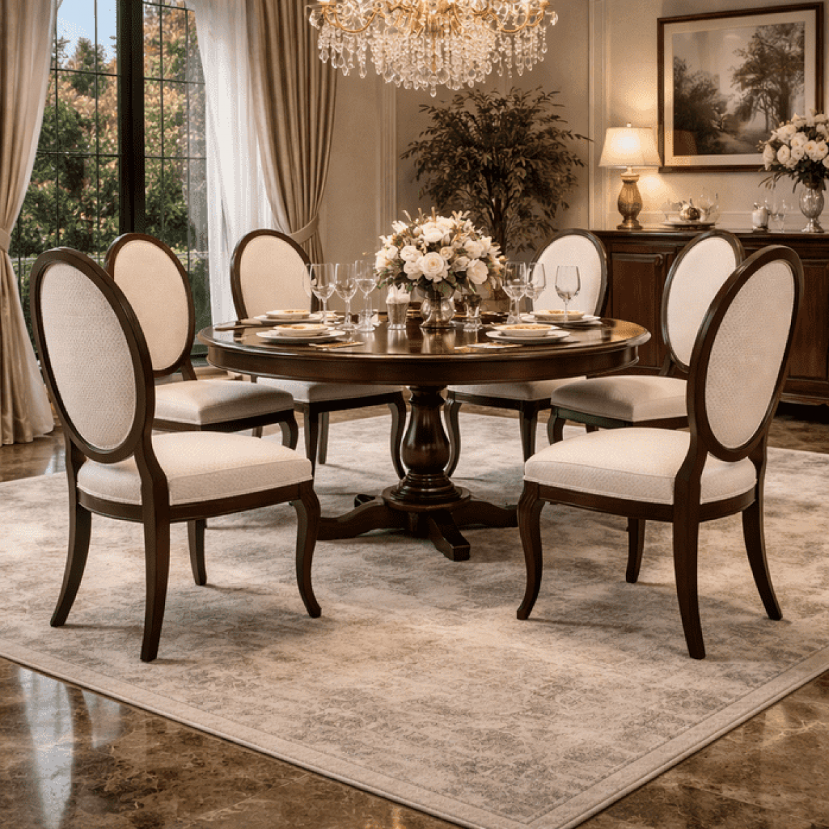 These chairs pair beautifully with luxury dining tables, creating a complete and harmonious dining setting. Whether combined with marble, solid wood, or designer dining tables, the refined walnut finish enhances the elegance of any dining environment. Designed for comfort and sophistication, these chairs elevate dining spaces into luxurious European-inspired interiors.