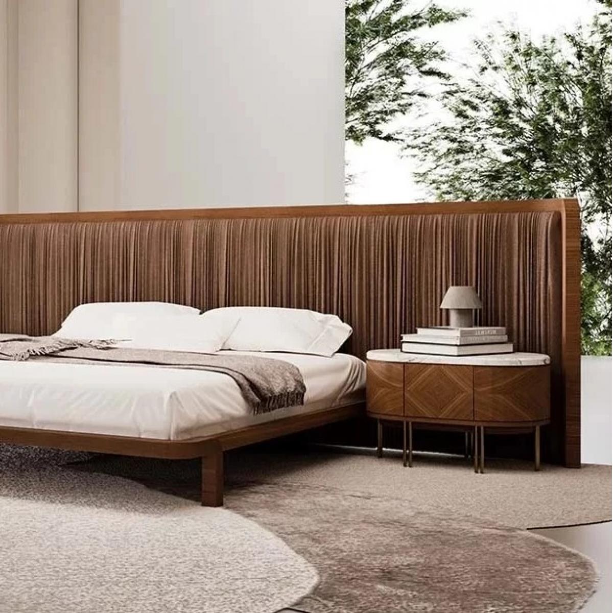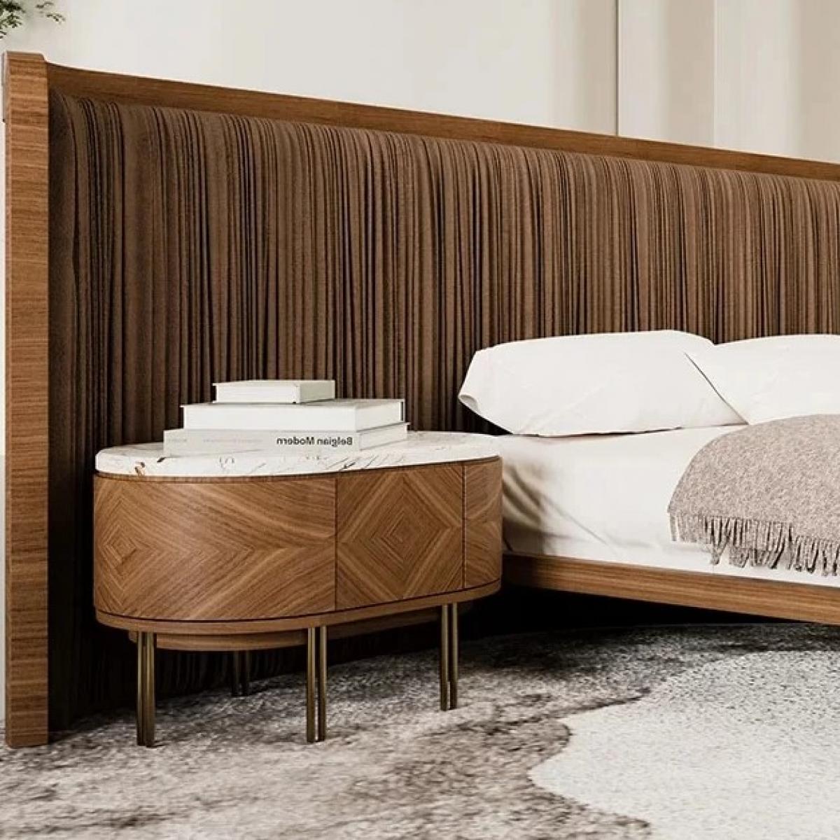 Ideal for modern and contemporary bedrooms, this luxury nightstand is perfect for those seeking a stylish yet functional piece of furniture. Its compact oval shape fits well in smaller spaces, while the luxurious materials appeal to design-conscious users. Whether placed beside a bed or used as an accent table, this nightstand complements a variety of interior styles and enhances the overall ambiance of your living space. Complements the Luxury Brown Wooden Pleated Headboard Hotel Bed perfectly, enhancing the elegance and harmony of a refined luxury bedroom interior. Discover our Luxury Bedroom Furniture Collection to create a harmonious and elegant sleeping space with refined furniture designed for sophisticated interiors. Explore more eye-catching pieces in luxury nightstands collection.