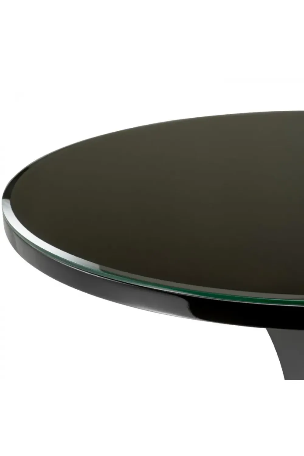 With its classic, yet contemporary appeal, this luxury piano black finish round side table with clear glass top is perfect for interiors that value architectural design and understated luxury.