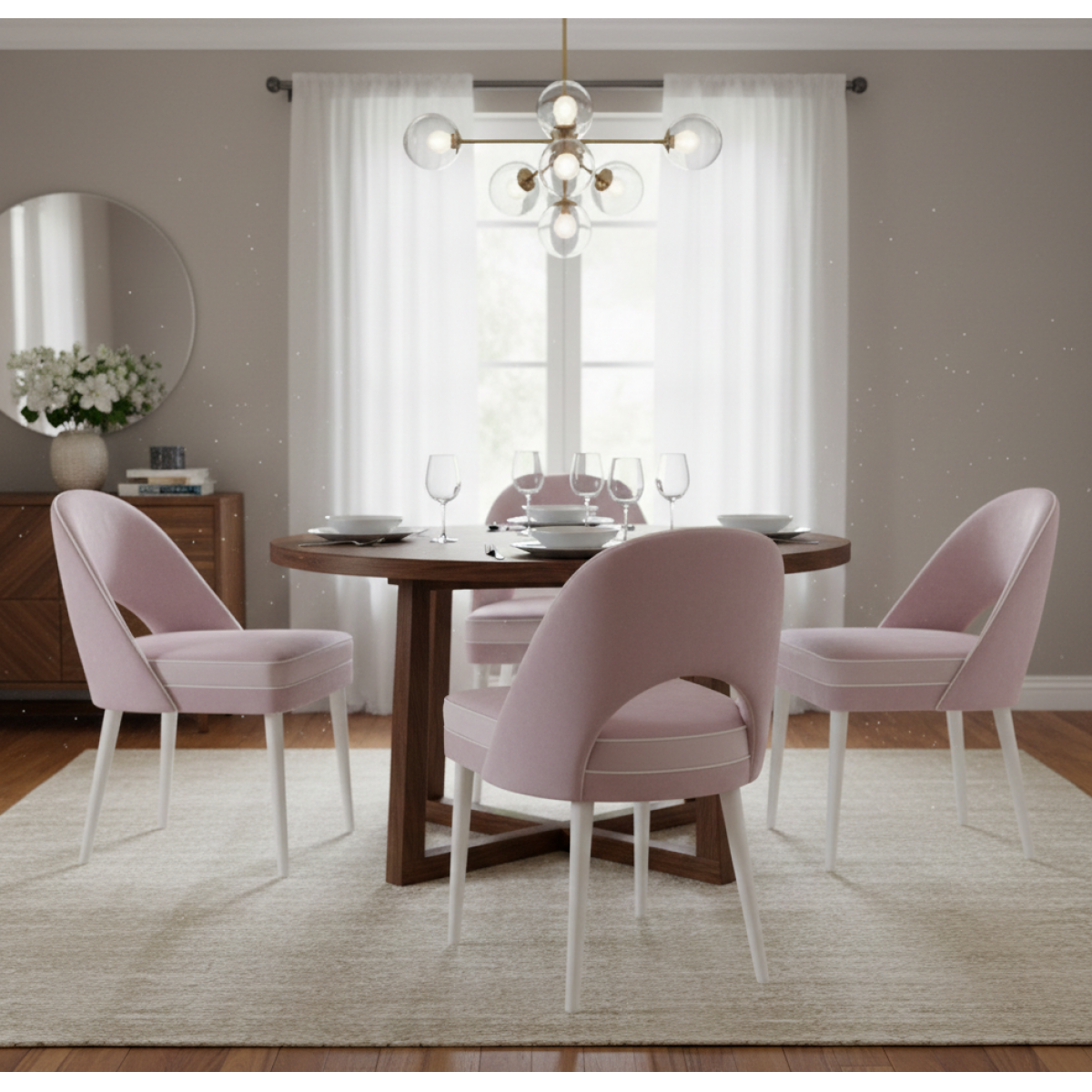 When paired with luxury dining tables, this chair elevates your dining experience, providing both style and comfort. The soft pink velvet upholstery is versatile enough to complement a variety of dining table finishes, creating a warm and inviting atmosphere in both formal and casual dining spaces. To complete your luxurious dining setup, explore more curated pieces from the luxury group collection, where every product is crafted with impeccable attention to detail and designed to enhance your home’s elegance.