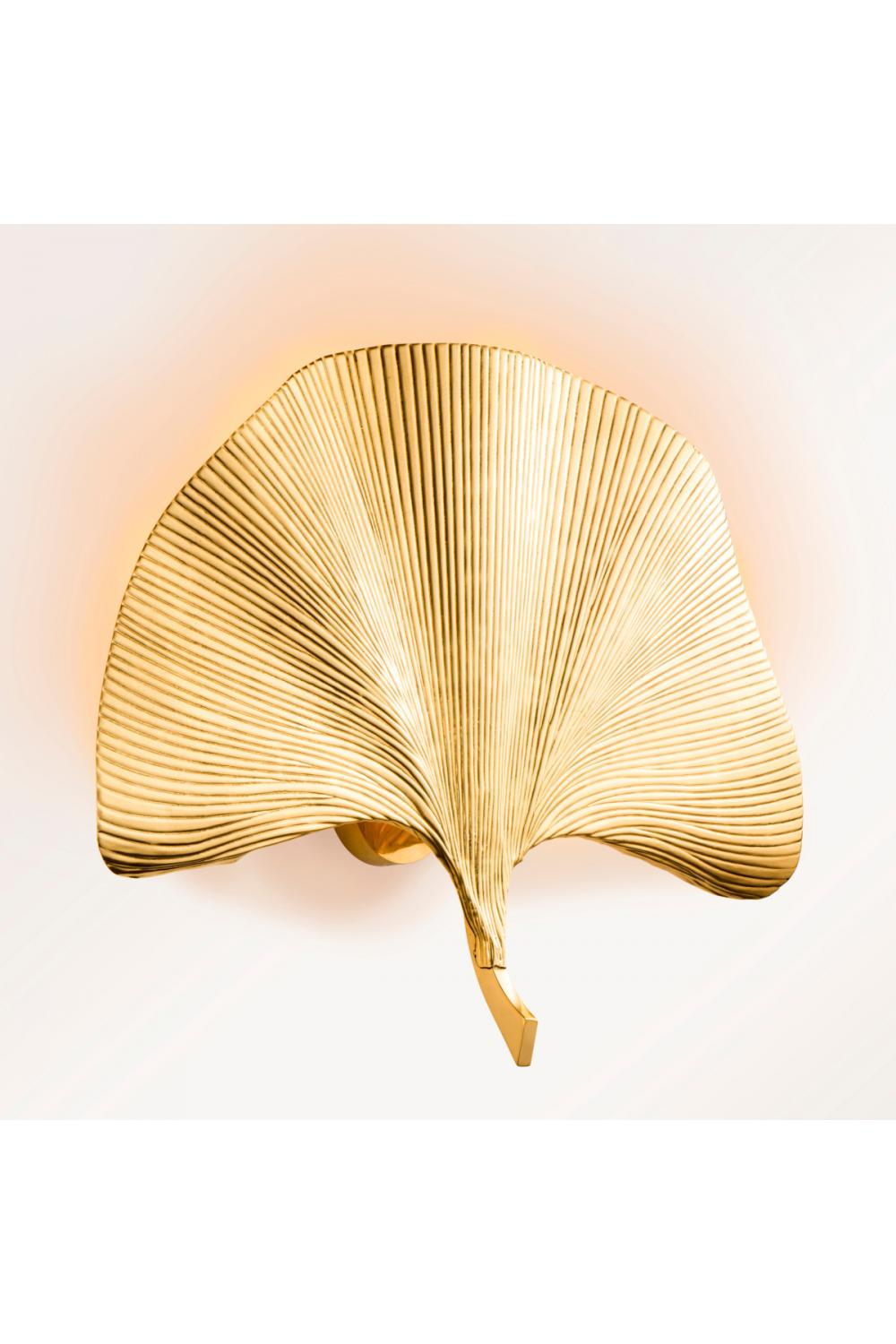 A sculptural wall lamp inspired by botanical forms, crafted in radiant polished brass to create a striking decorative accent. This Polished brass wall lamp brings organic elegance and warm reflective light, capturing the refined charm of a botanical jungle trend wall lamp for luxury European interiors.
