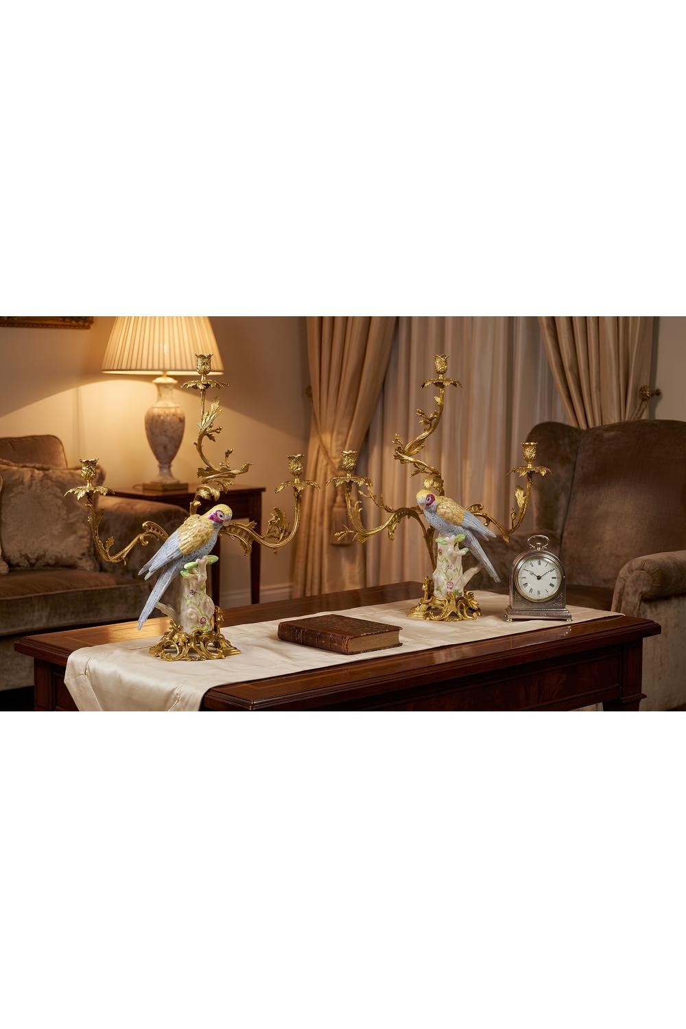 Elegant, striking, and richly decorative, this pair of bronze-mounted porcelain parrot candle holders introduces timeless European charm to any luxury interior. Featuring beautifully modelled parrots perched on detailed bronze bases, each piece blends fine craftsmanship with functional artistry. Perfect for console tables, mantelpieces, dining settings, and curated display arrangements, these candle holders elevate classic décor with colour, character, and refined sophistication.