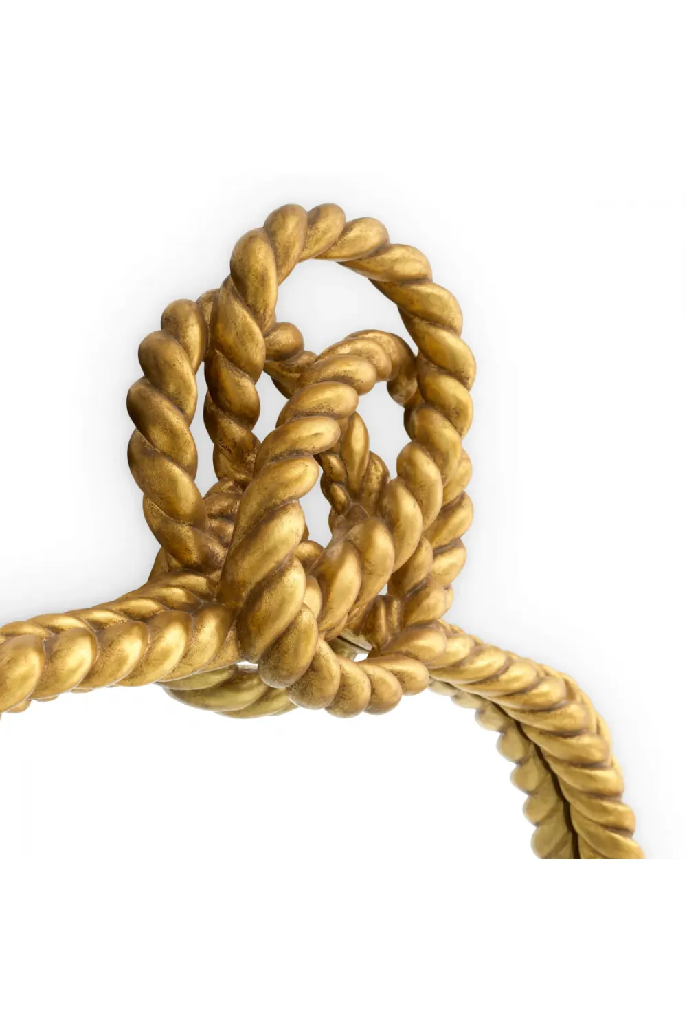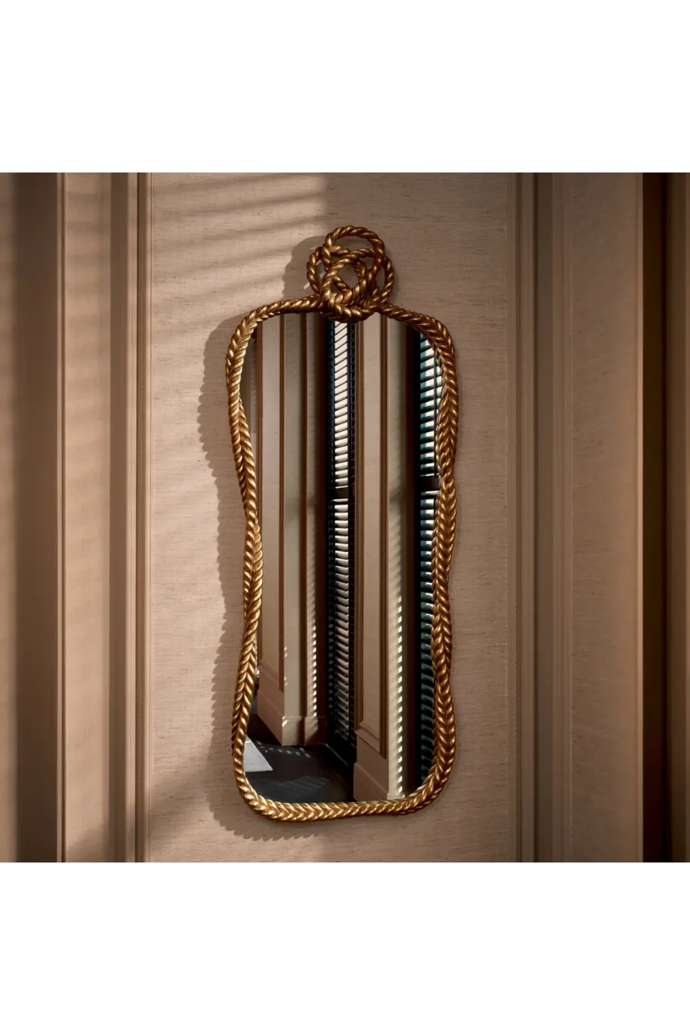 A sculptural Luxury mirror crafted from premium wood and finished in radiant antique gold leaf, featuring a rope-twist silhouette with a striking knot detail.