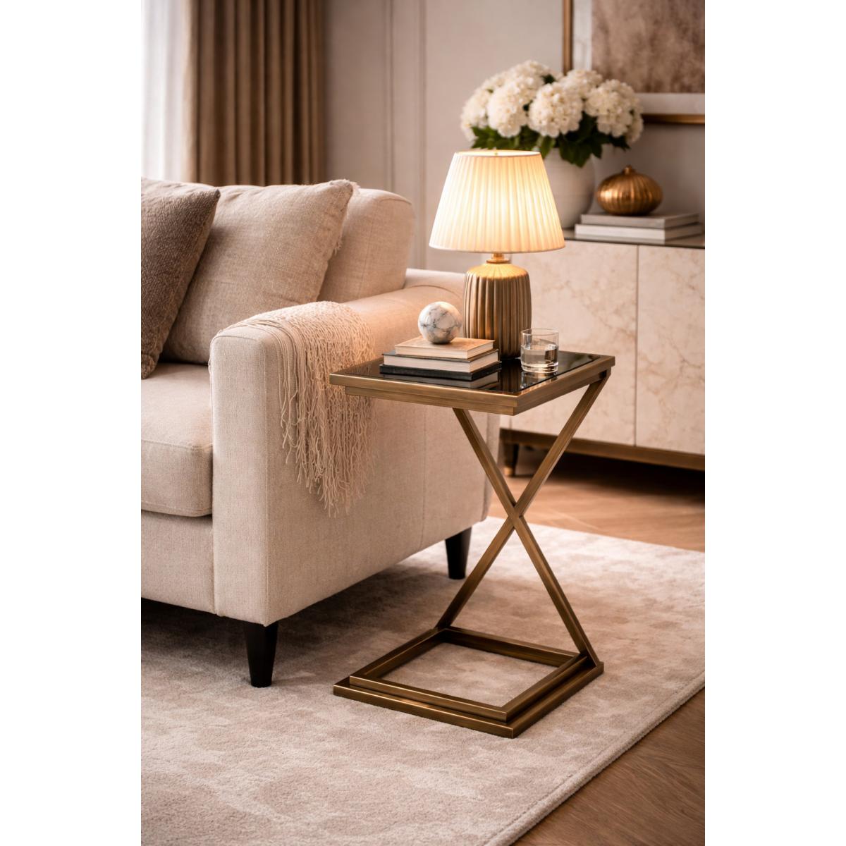 • Available as Gunmetal or Vintage Brass luxury side table finish