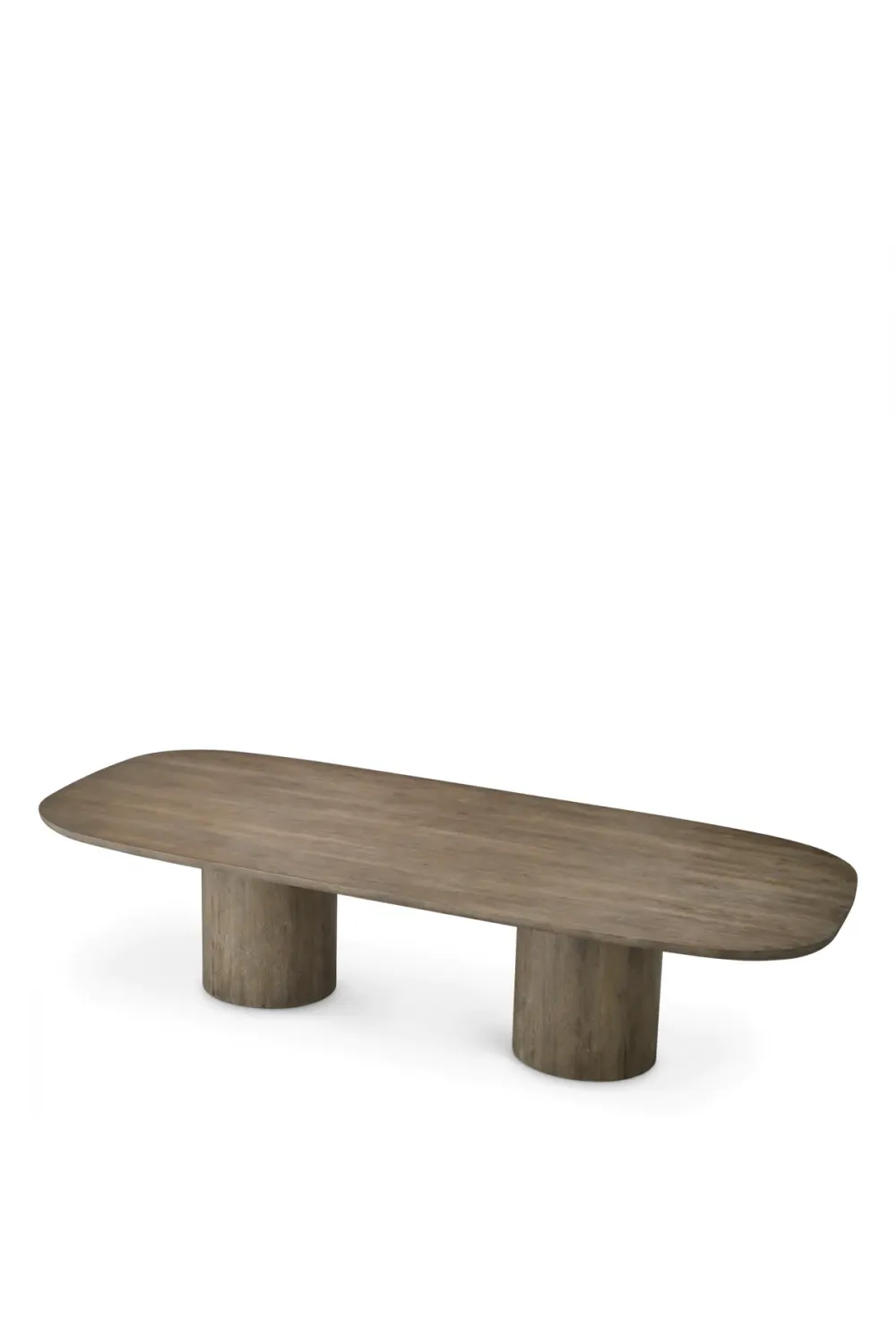 The rectangular tabletop is meticulously crafted to provide a generous surface, ideal for formal gatherings, curated dining settings, and everyday luxury living. Softly contoured edges and a harmonious silhouette ensure visual lightness, while the sculptural pedestal bases lend architectural strength and balance.