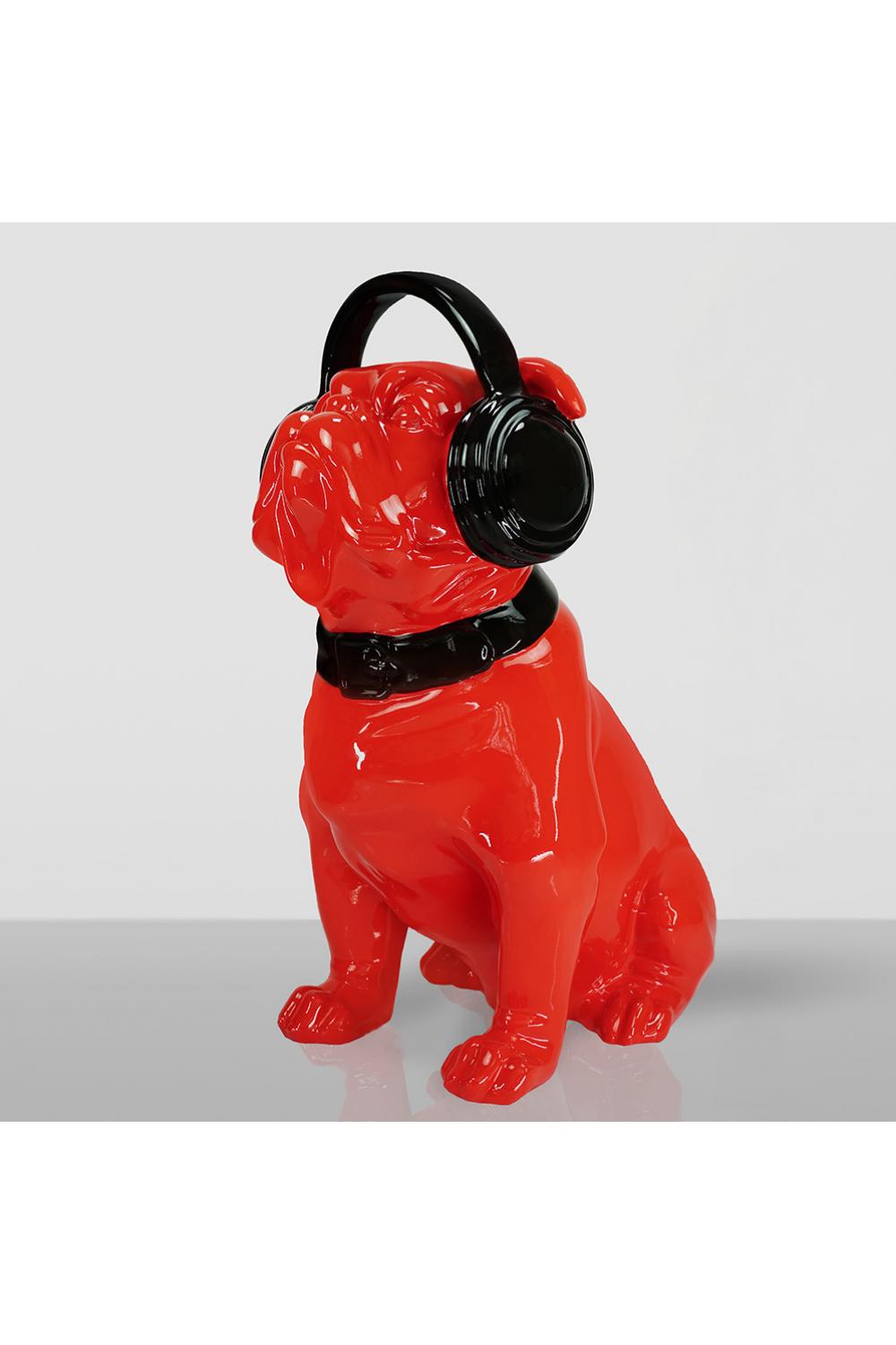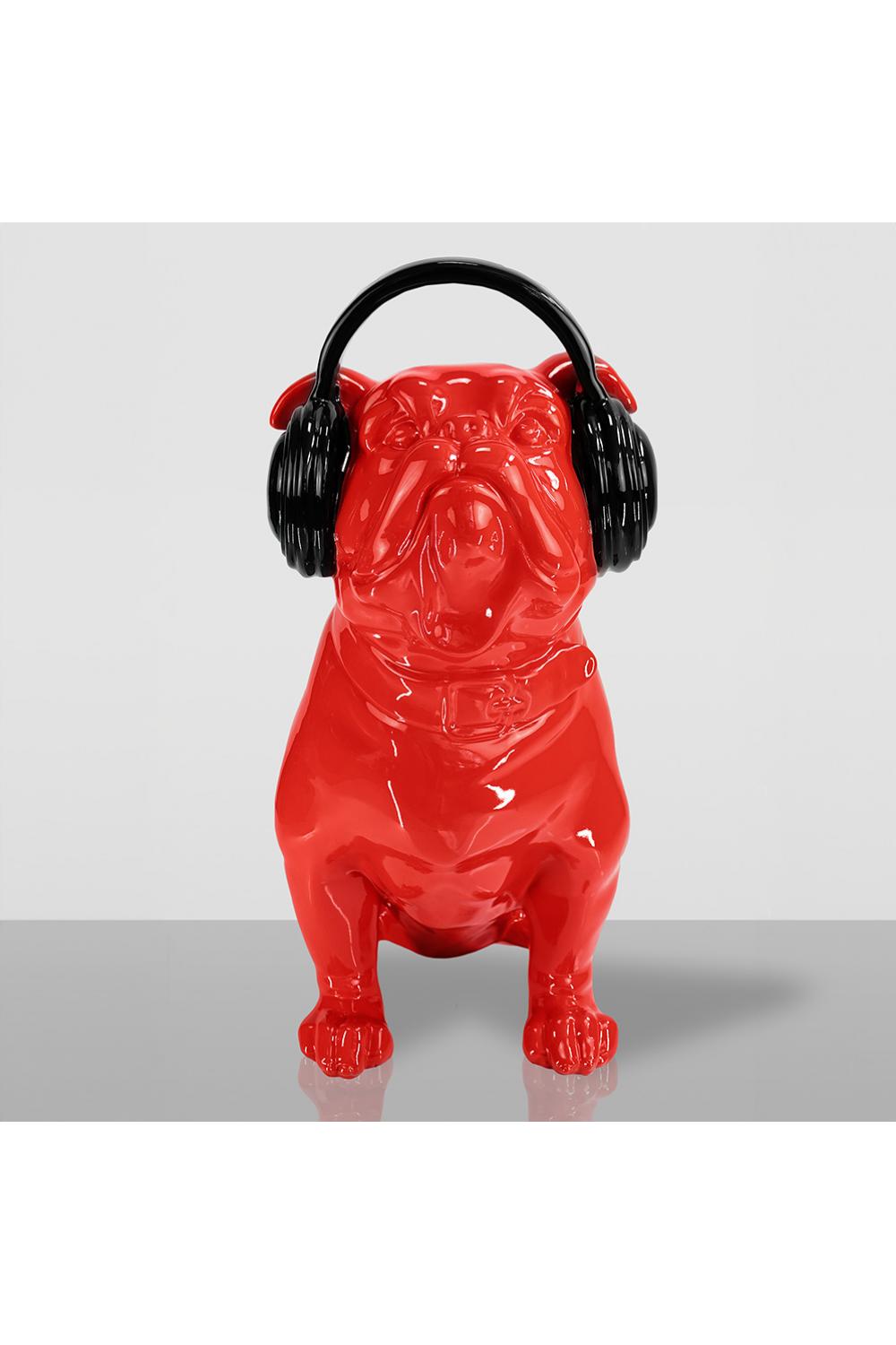 Luxury Red Bulldog Sculpture with Headphones – 120 cm