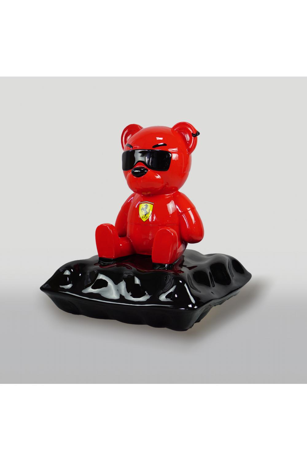 The Luxury Red Teddy Bear Sculpture – Sitting on Cushion captures the perfect blend of modern pop art and sophisticated décor. Crafted from high-quality PWS fiberglass laminate, this 100 cm hand-painted figure showcases a polished red surface, black sunglasses, and a glossy cushion-style base. Each detail is meticulously finished with multiple layers of lacquer, resulting in a luminous and durable statement piece.
