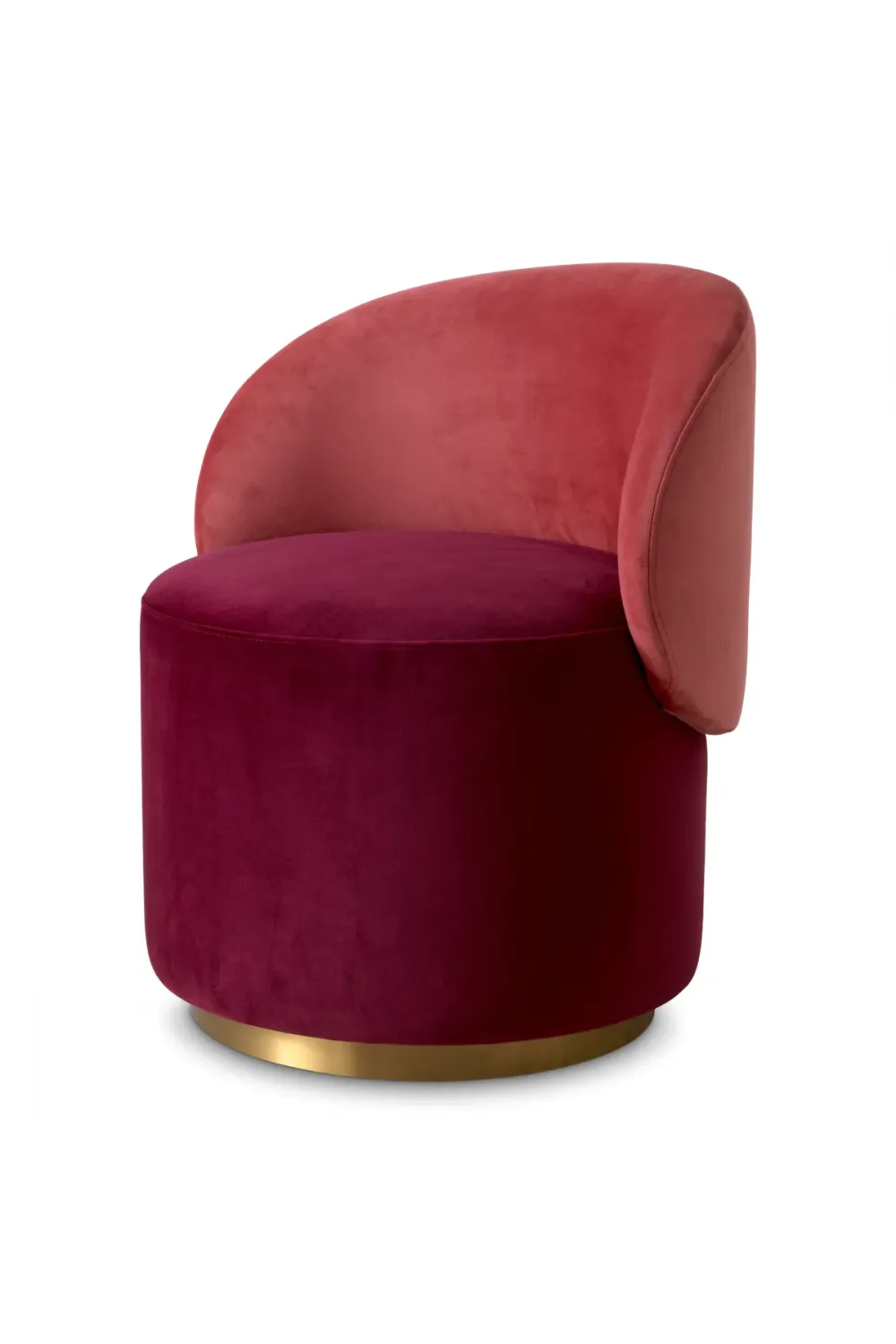 Low Dining Chair design upholstered in rich velvet defines this luxury dining chair as a statement of comfort and elegance. This luxury dining chair introduces refined colour depth and a relaxed seating height for modern dining spaces. The Savona bordeaux red velvet dining chair finish adds warmth and a bold visual accent. A dining chair with brushed brass swivel base delivers smooth movement with a refined metallic touch. Designed for elegant European interiors, it balances comfort, colour, and contemporary sophistication.