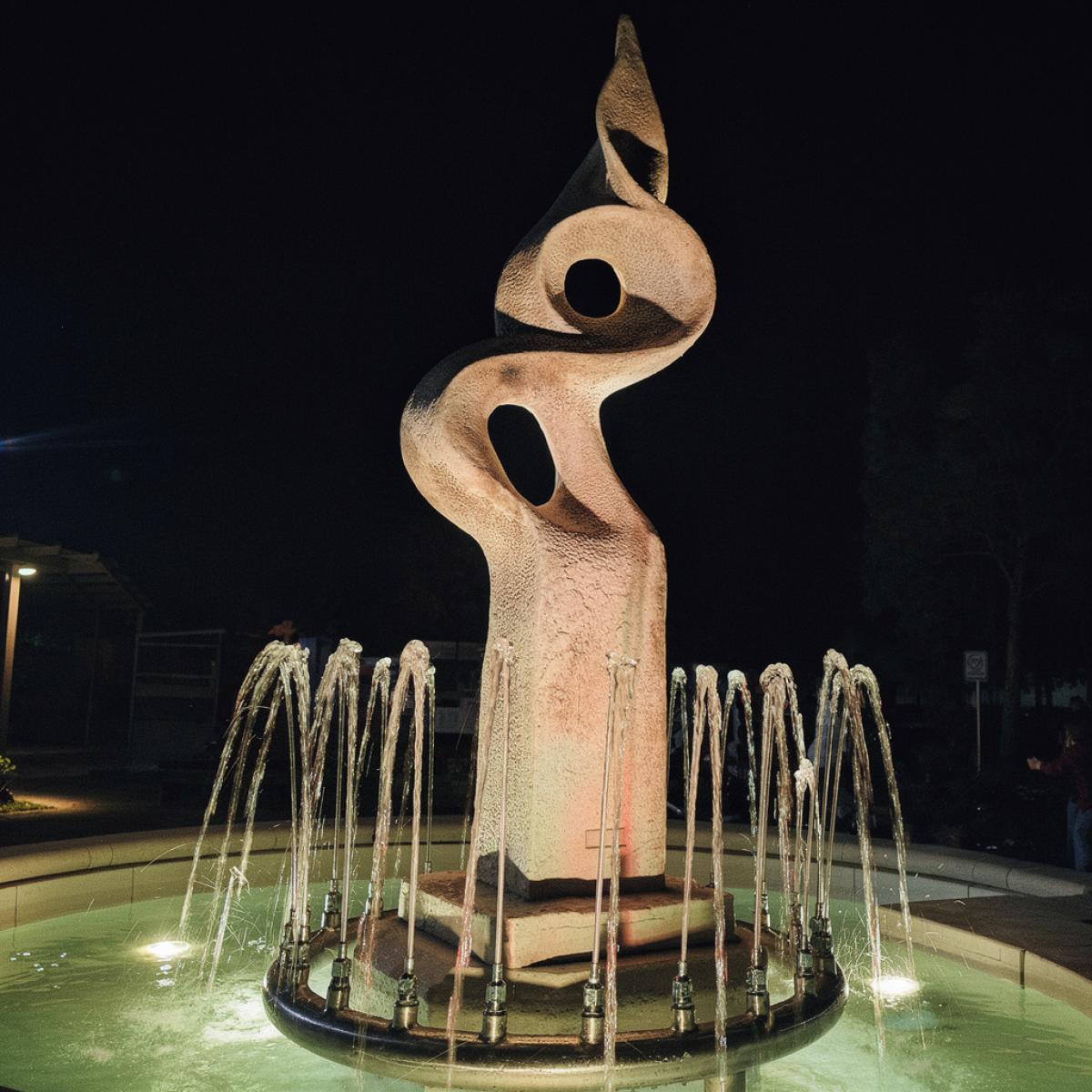 - Premium water fountain with abstract sculptural centerpiece