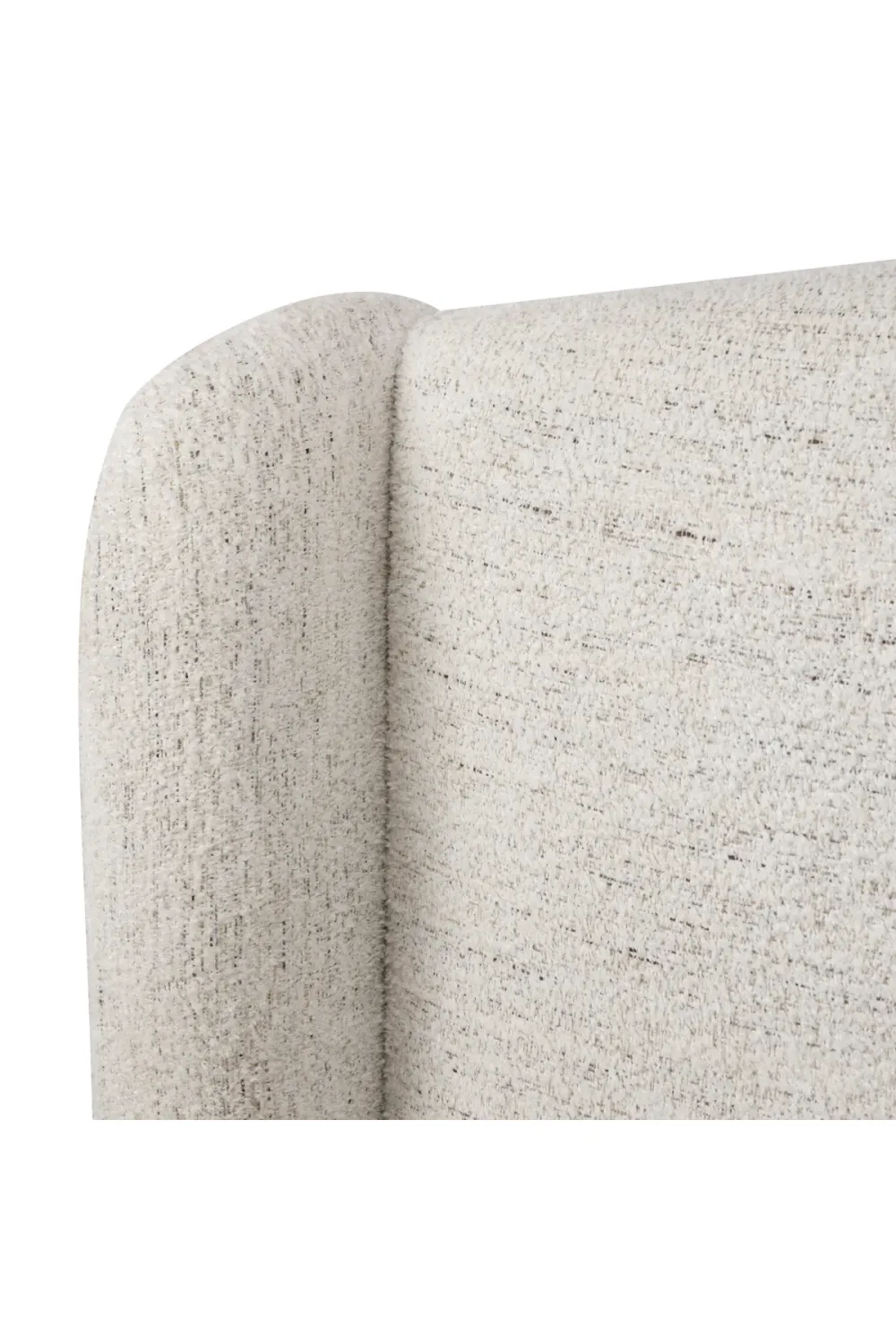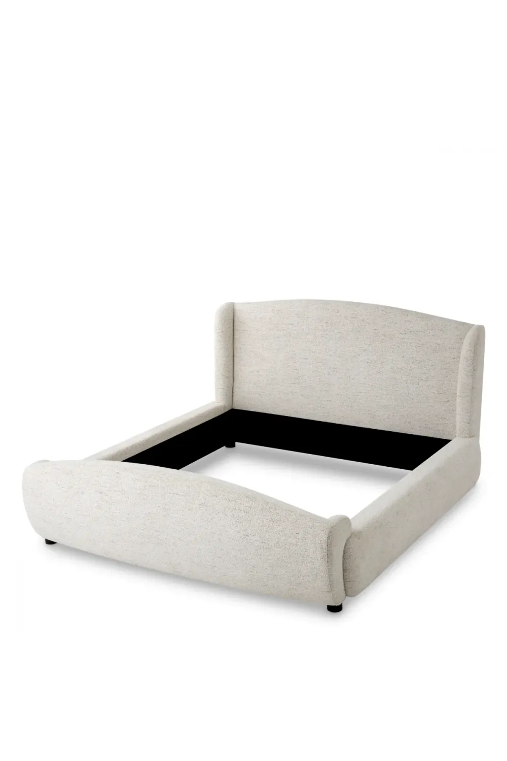 Crafted to complement a 180 × 210 cm box spring, the frame delivers exceptional comfort, while its neutral tone ensures effortless coordination with a wide range of décor styles. The smooth curves and soft fabric embody a sense of quiet luxury, allowing the off white bed frame to harmonize beautifully with warm woods, marble accents, or metallic finishes.