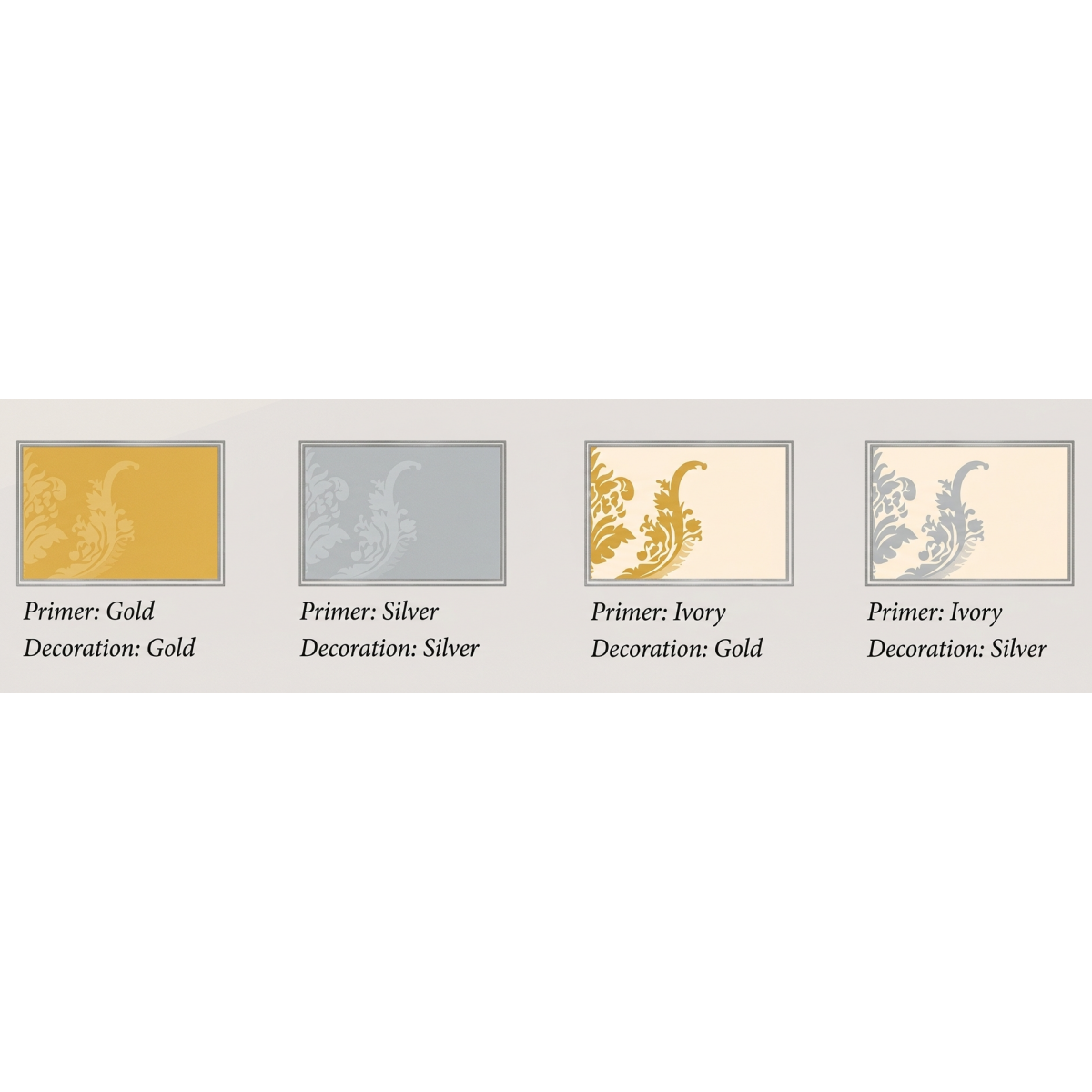 For bespoke interior projects, this mirror is available upon request in the following variations: Primer: Gold with Decoration: Gold, Primer: Ivory with Decoration: Gold, and Primer: Ivory with Decoration: Silver.