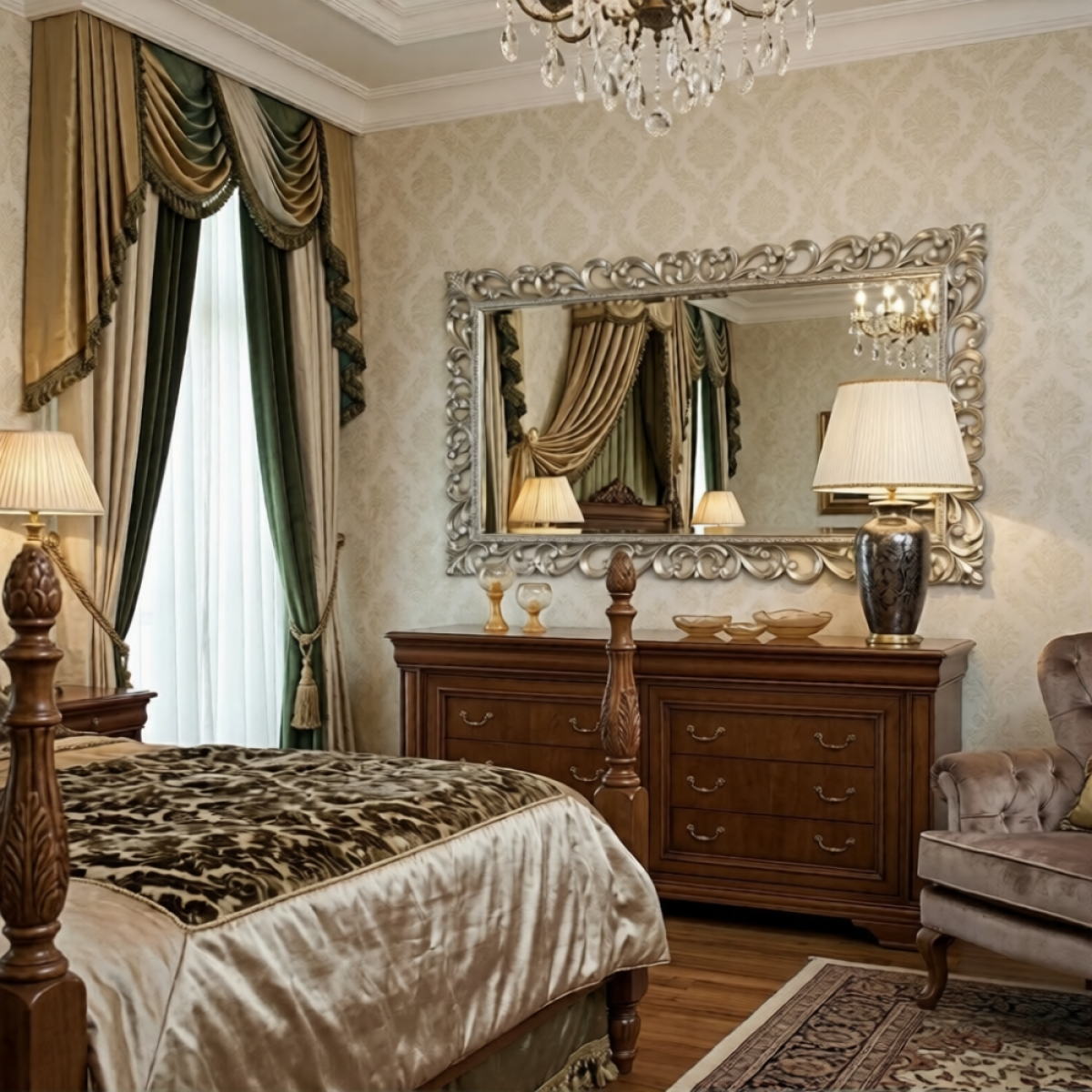 To achieve a cohesive European composition, this mirror pairs beautifully with our exclusive collection of luxury dressers, creating a harmonious arrangement suited to salons, reception spaces, or elegant dressing rooms. The open-scroll craftsmanship and luminous silver finish bring timeless refinement while enhancing spatial depth and architectural balance.