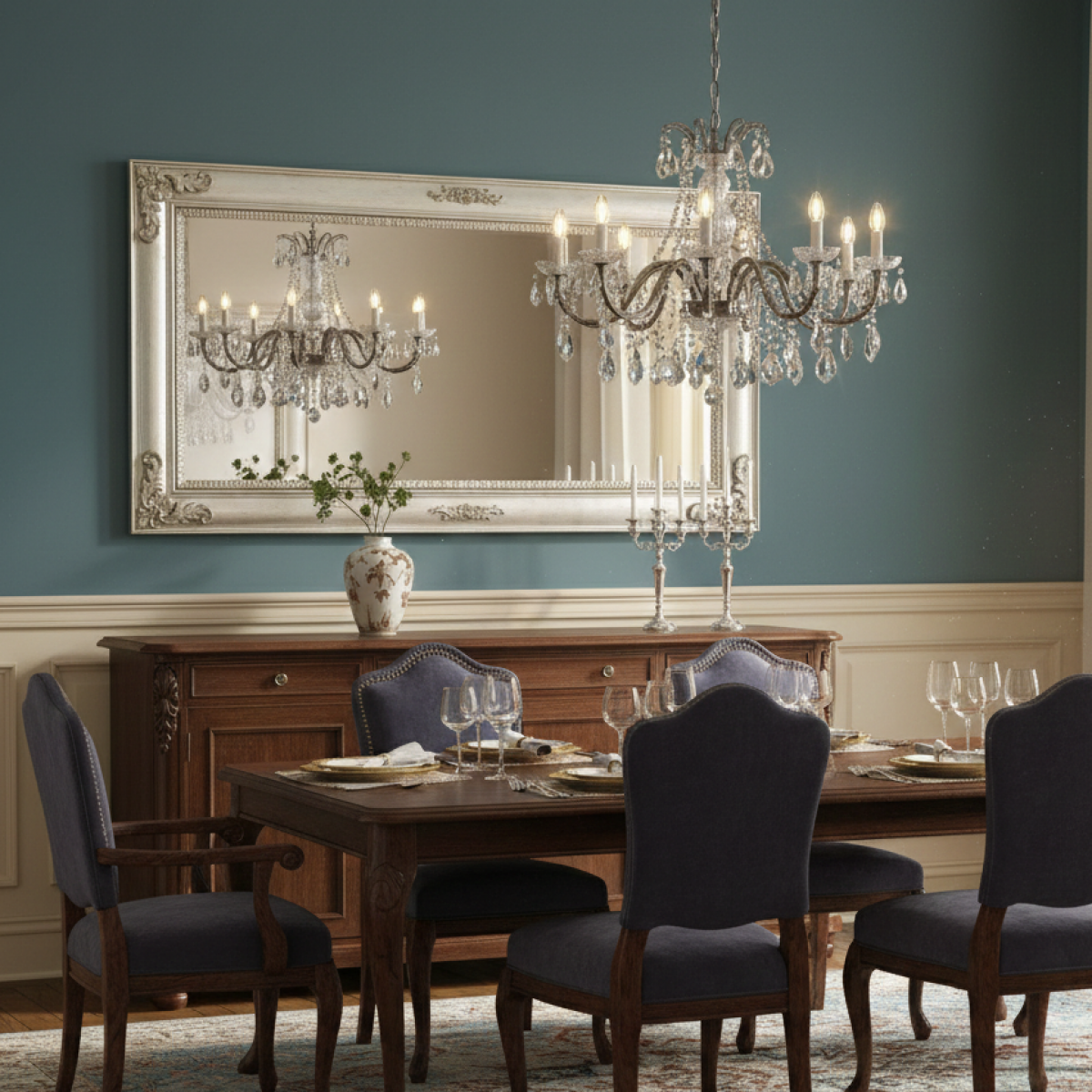 Within our curated range of luxury baroque mirrors, this design pairs beautifully with the Rectangular Ivory Baroque Wall Mirror with Hand-Carved Leaf Corners and Gold Accent Frame for those who appreciate warmer tonal compositions. These baroque mirrors for indoors are designed to offer timeless grandeur while maintaining versatile adaptability.
