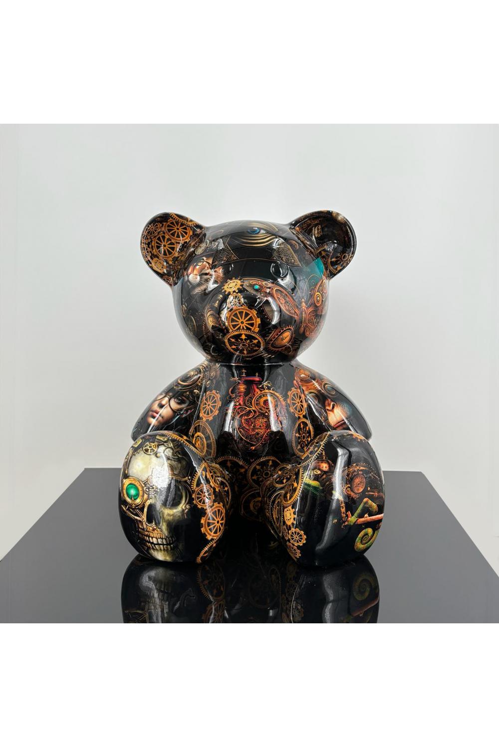 Available in three stunning motifs — Sweet, inspired by whimsical fantasy and dreamlike color palettes; India, featuring vibrant patterns and cultural artistry; and Industrial, reflecting urban texture and metallic tones — these bears exemplify the beauty of modern contemporary sculpture.