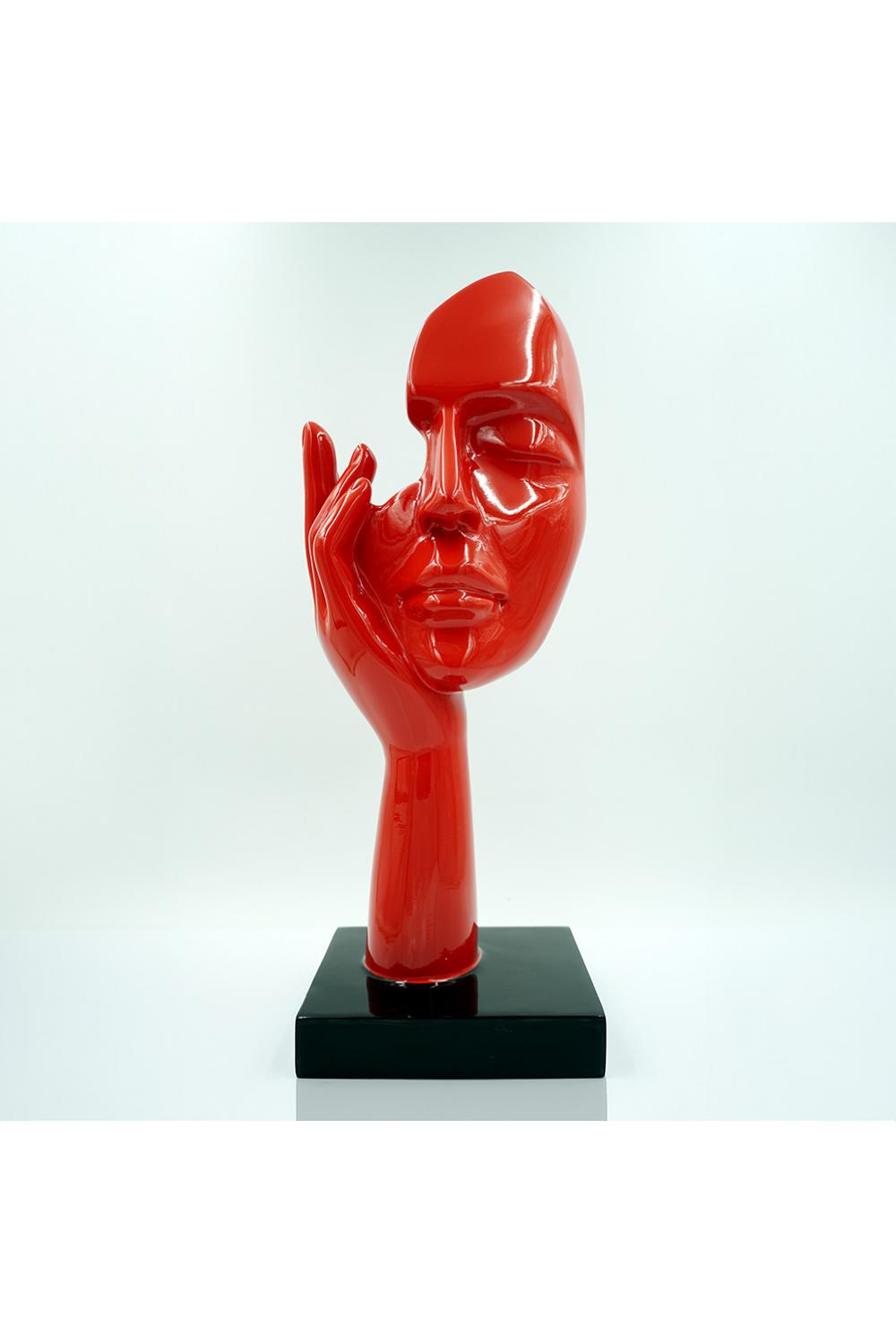 The Art Reflection Sculpture captures the poetic balance between mystery and elegance. Handcrafted from high-quality polyester resin, this 50 cm decorative piece features a stylized face resting gently on a hand — a symbol of thought and creative introspection. The gold finish radiates sophistication and luxury, while the red variant exudes passion and modern flair.
