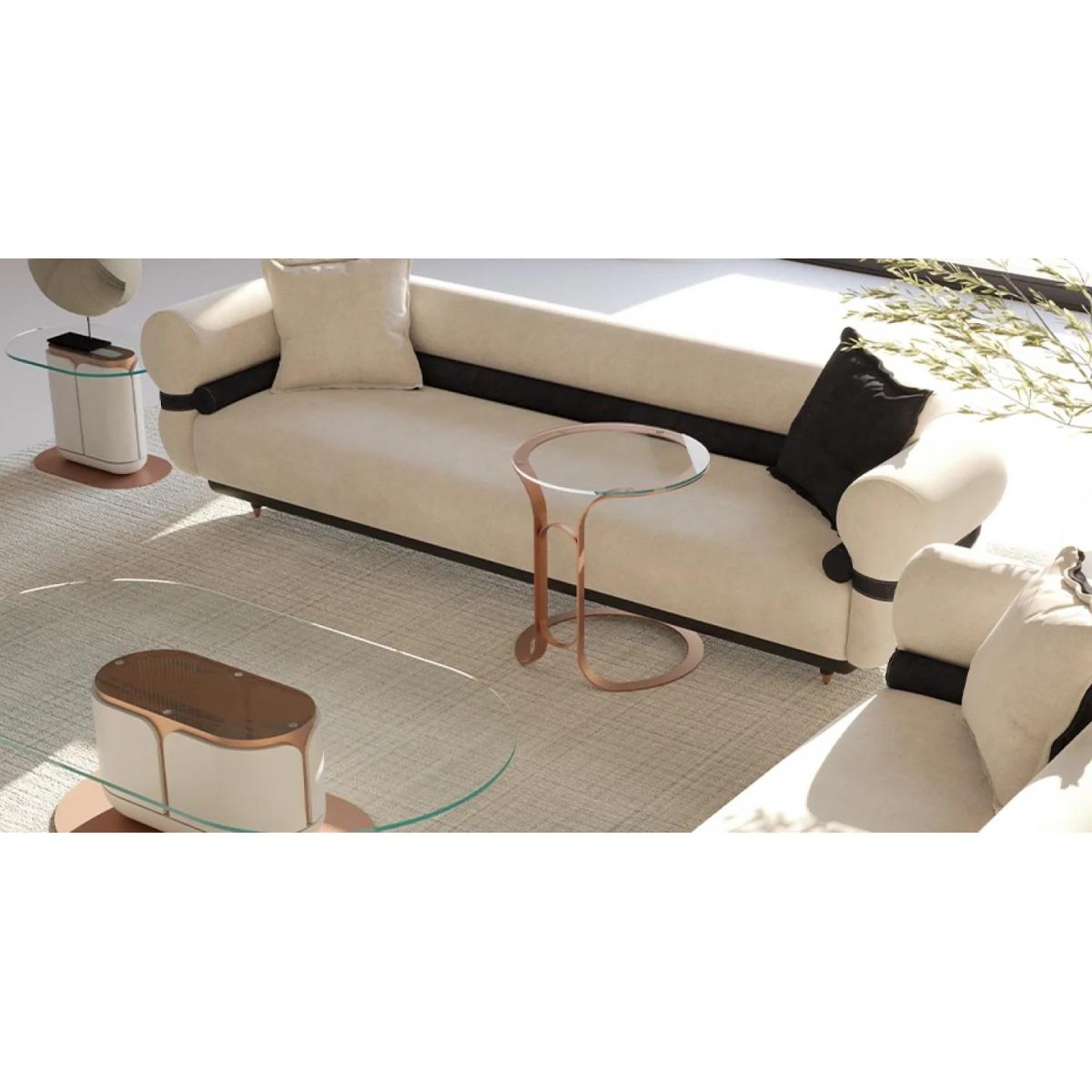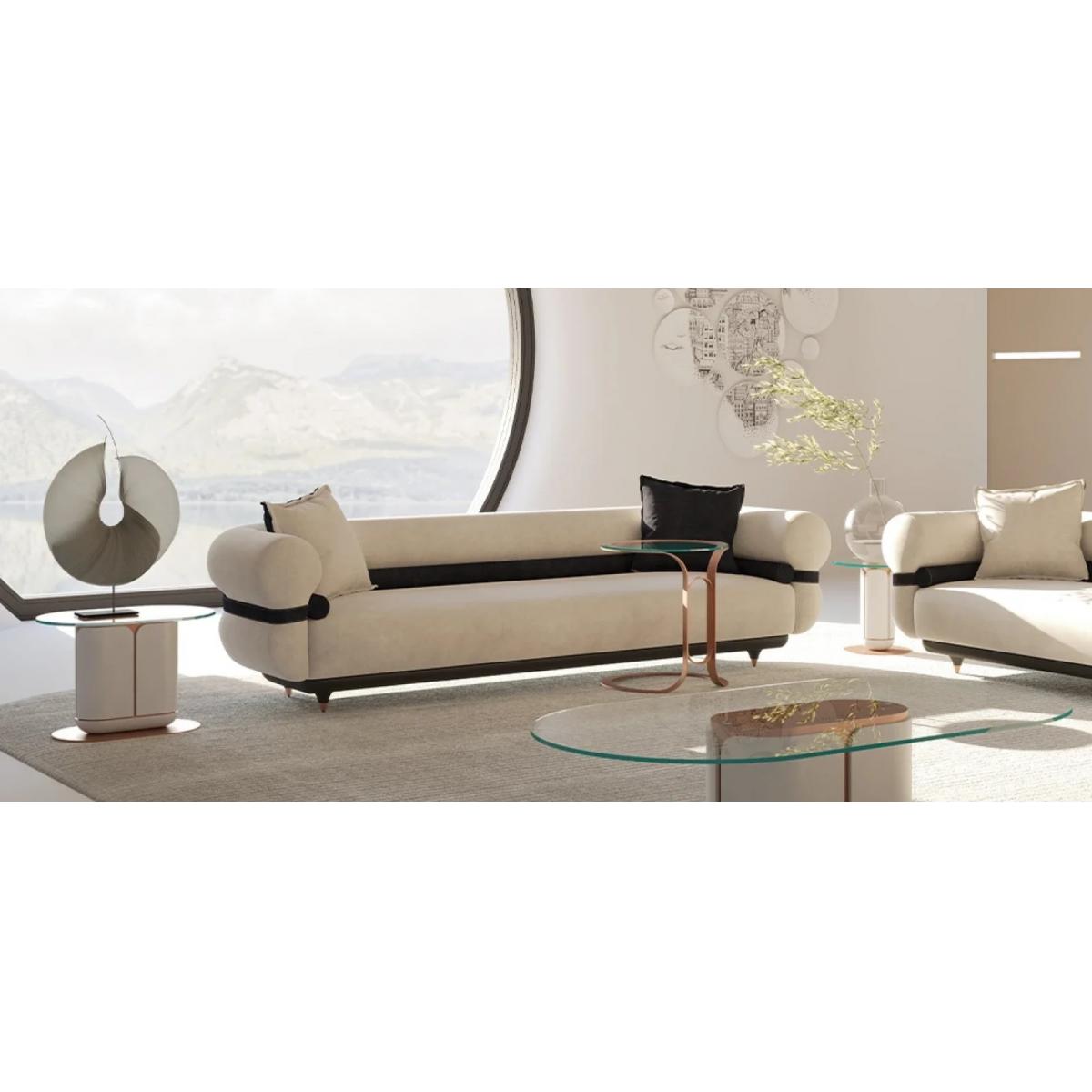 This modern designer sofa creates a refined focal point for contemporary interiors. Explore more elegant seating in our Luxury Sofa Collection.