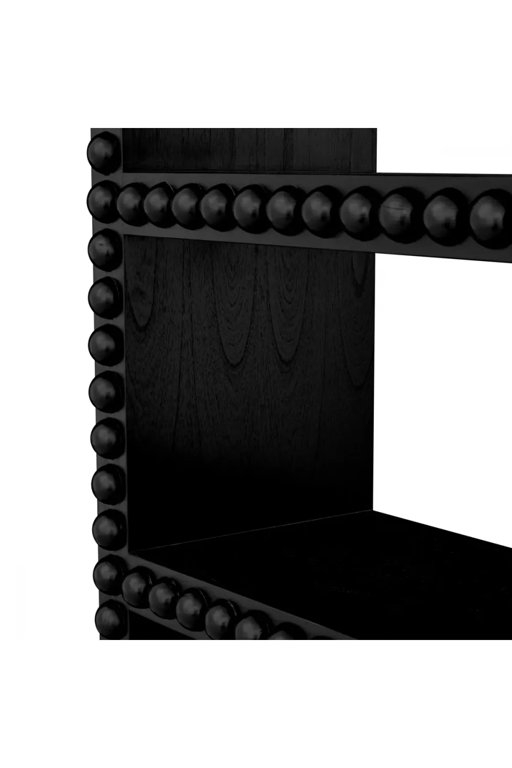 The luxury display cabinet is a statement of refined craftsmanship, designed to elevate interiors through form, proportion, and material integrity. Constructed from solid wood and finished in a rich classic black tone, this cabinet introduces a commanding vertical presence while maintaining balanced elegance. The defining feature lies in its half-rounded carved detailing along the frame, adding sculptural texture and subtle shadow play. Standing at 230.5 cm in height, this luxury display cabinet offers generous storage and display capacity without overwhelming the space. Four fixed shelves provide structured organisation, making it ideal for showcasing decorative objects, books, or curated collections within sophisticated interiors.
