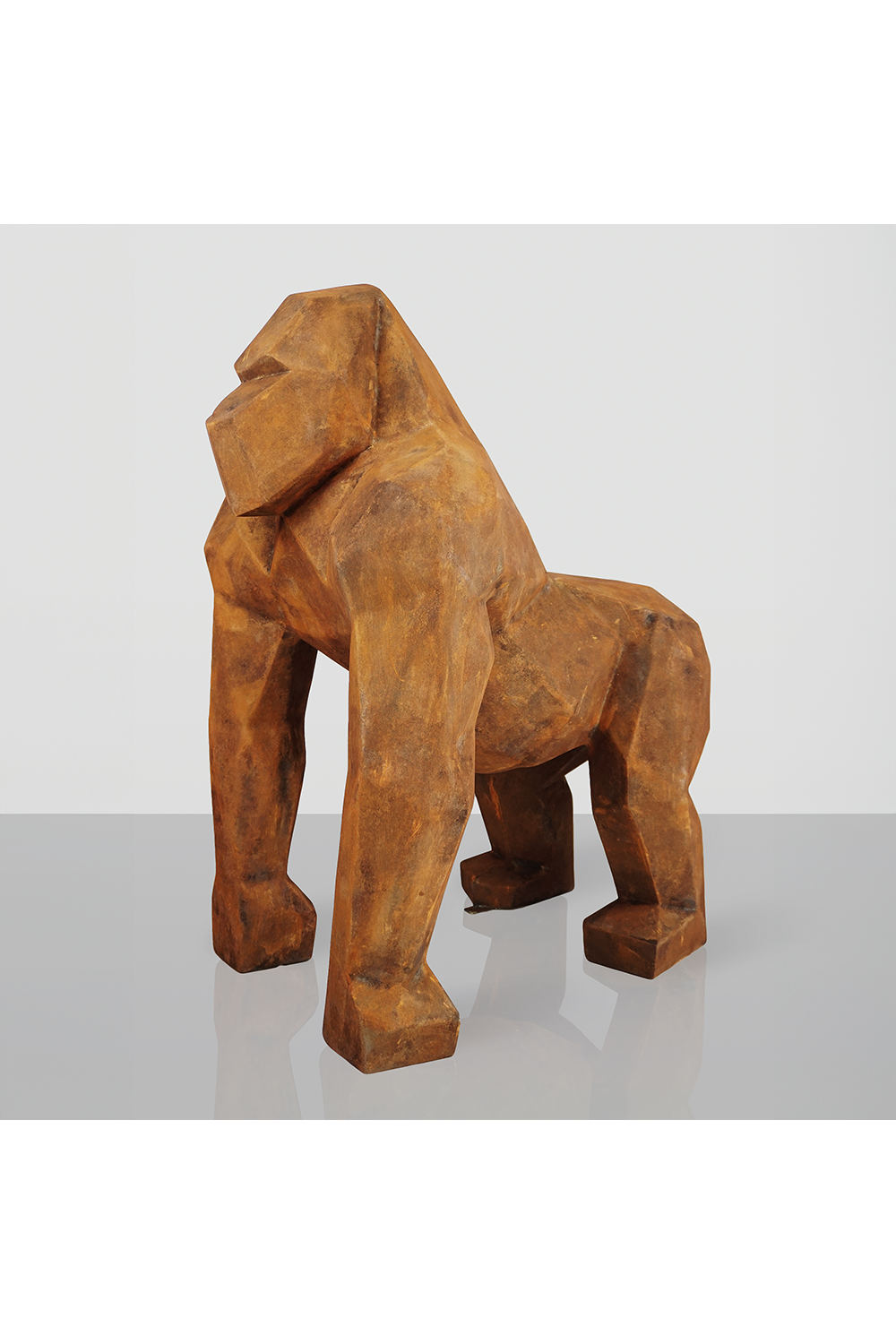 This Luxury Square Gorilla Decorative Sculpture in Rust Effect, a formidable statement where primal force meets minimalist geometry. This substantial piece redefines the concept of a large statue, translating the iconic form of the gorilla into a powerful composition of intersecting planes and solid volumes. Its impactful silhouette, standing 128 cm tall, commands a quiet authority within any interior. The sculpture's soul, however, lies in its meticulously crafted rust effect surface—a finish that tells a story of time, strength, and industrial poetry, establishing it as a truly distinctive modern sculpture.